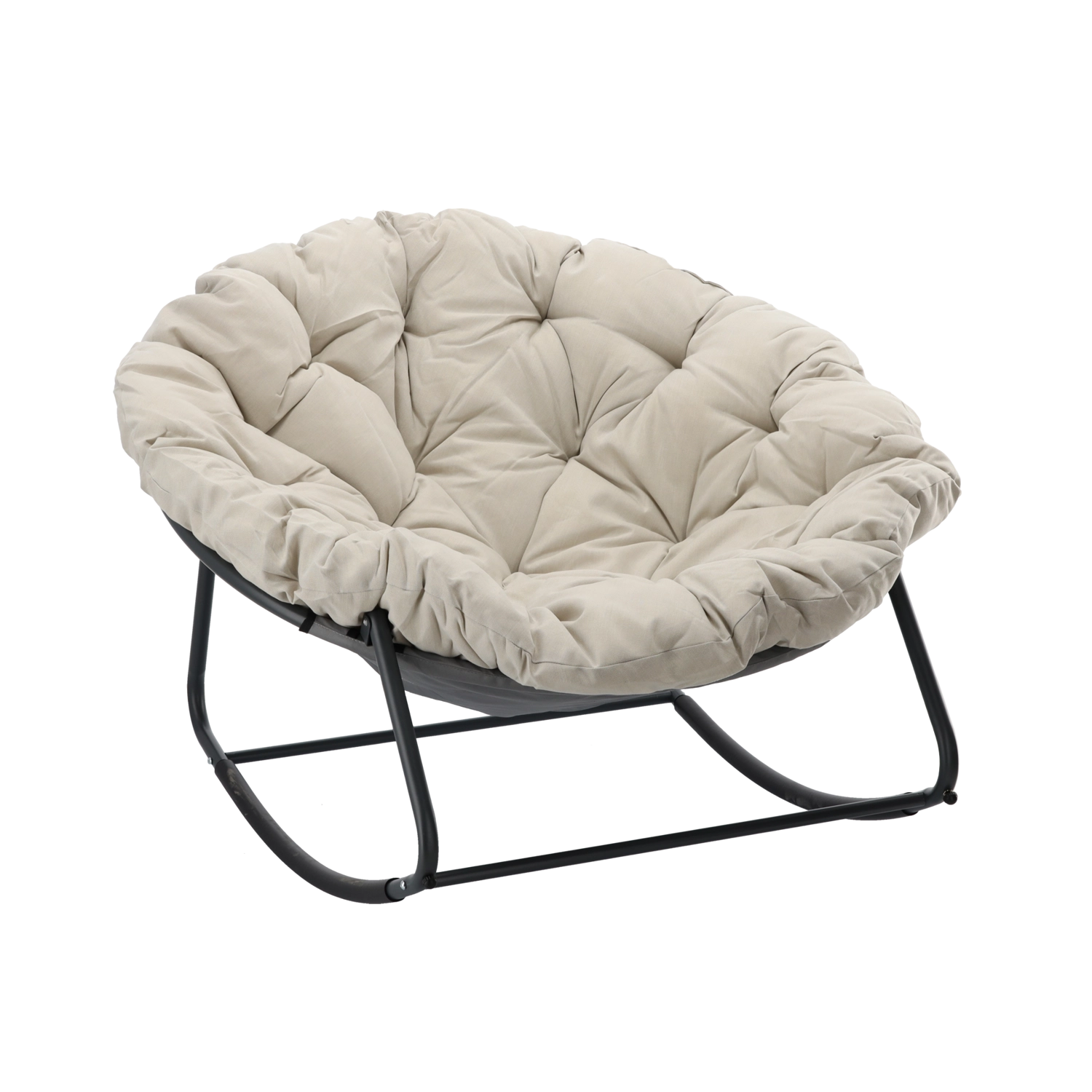 Schommelstoel met beige kussen en grijs metalen frame 105 × 67 cm