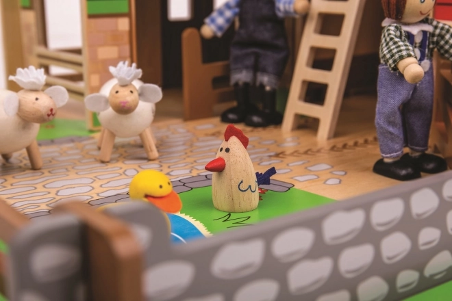 De set is gemaakt van hoogwaardig hout uit verantwoorde bronnen en is compatibel met extra accessoires die je later kunt bijkopen. Realistische elementen zoals de eendenpoel, tractorgarage en weides met beweegbare poorten stimuleren fantasierijk spel, verhalen verzinnen en de ontwikkeling van de fijne motoriek.
