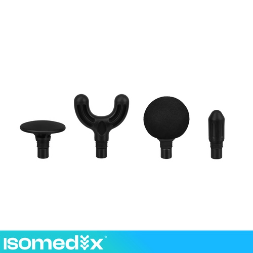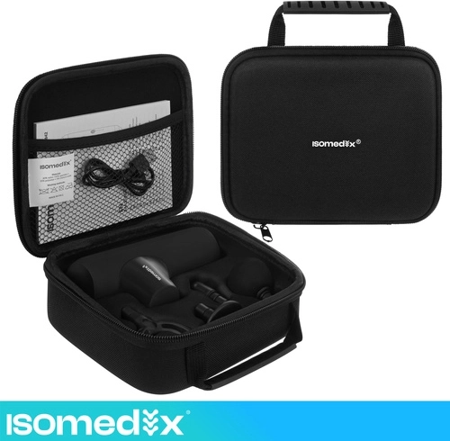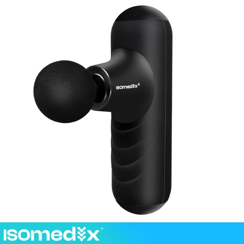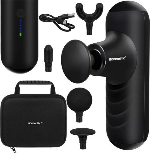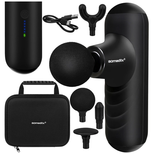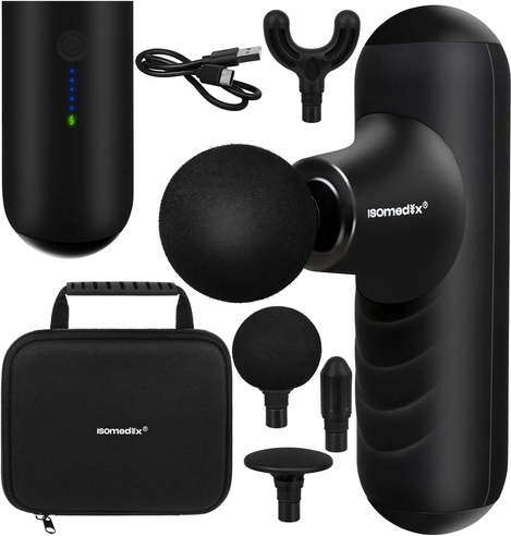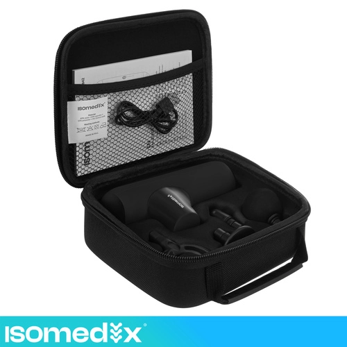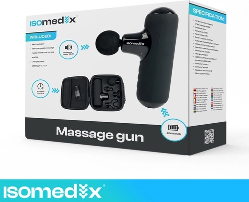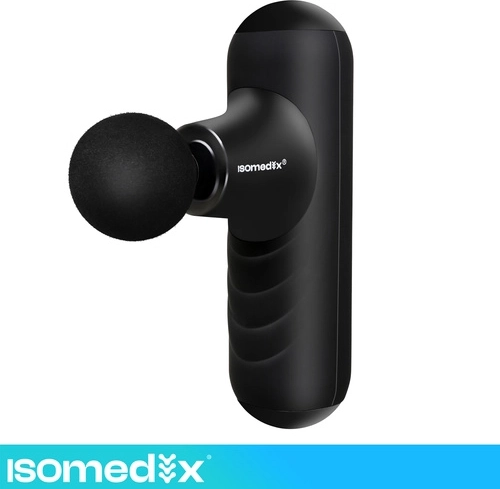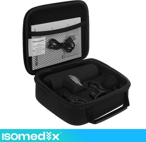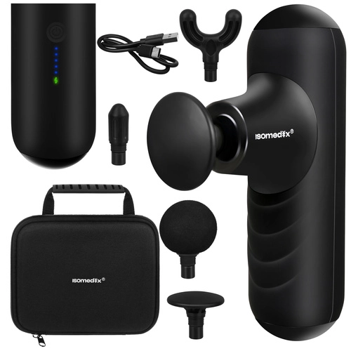 Mini massagepistool Isomedix met 5 standen, 4 opzetstukken en etui