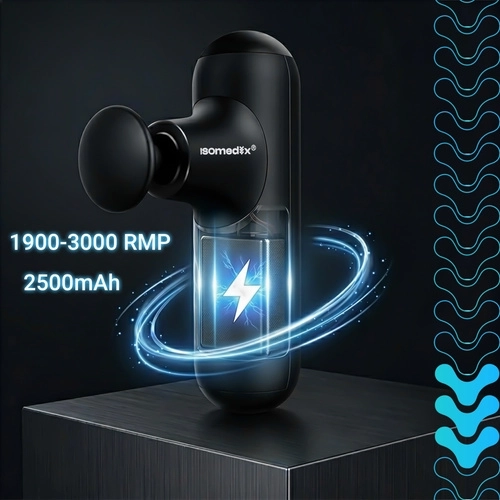 De compacte massagepistool ISOMEDIX verlicht spierspanning en versnelt herstel na training en gedurende de dag. Biedt 5 massagestanden, 4 verwisselbare opzetstukken voor gerichte therapie, stille werking onder 45 dB en lange gebruiksduur dankzij een batterij van 2×2500 mAh. Het lichte ontwerp met een borstelloze motor en USB‑C-opladen is ideaal voor thuis, in de sportschool en op reis.