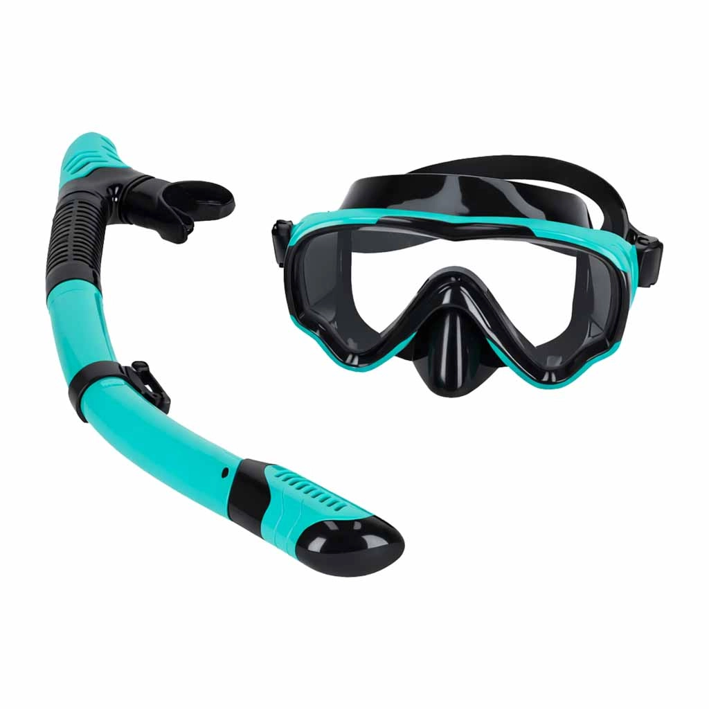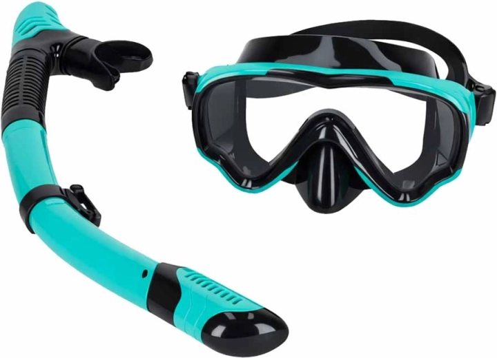 Deze universele set is ideaal voor vakanties aan zee en meer. Het brede, naadloze glas biedt een panoramisch zicht zonder tunneleffect en de verstelbare, gesplitste band helpt de bril snel en zeker te positioneren. De snorkel met dry‑top systeem minimaliseert het binnendringen van water van bovenaf en het purgeventiel maakt het uitblazen ervan eenvoudiger.