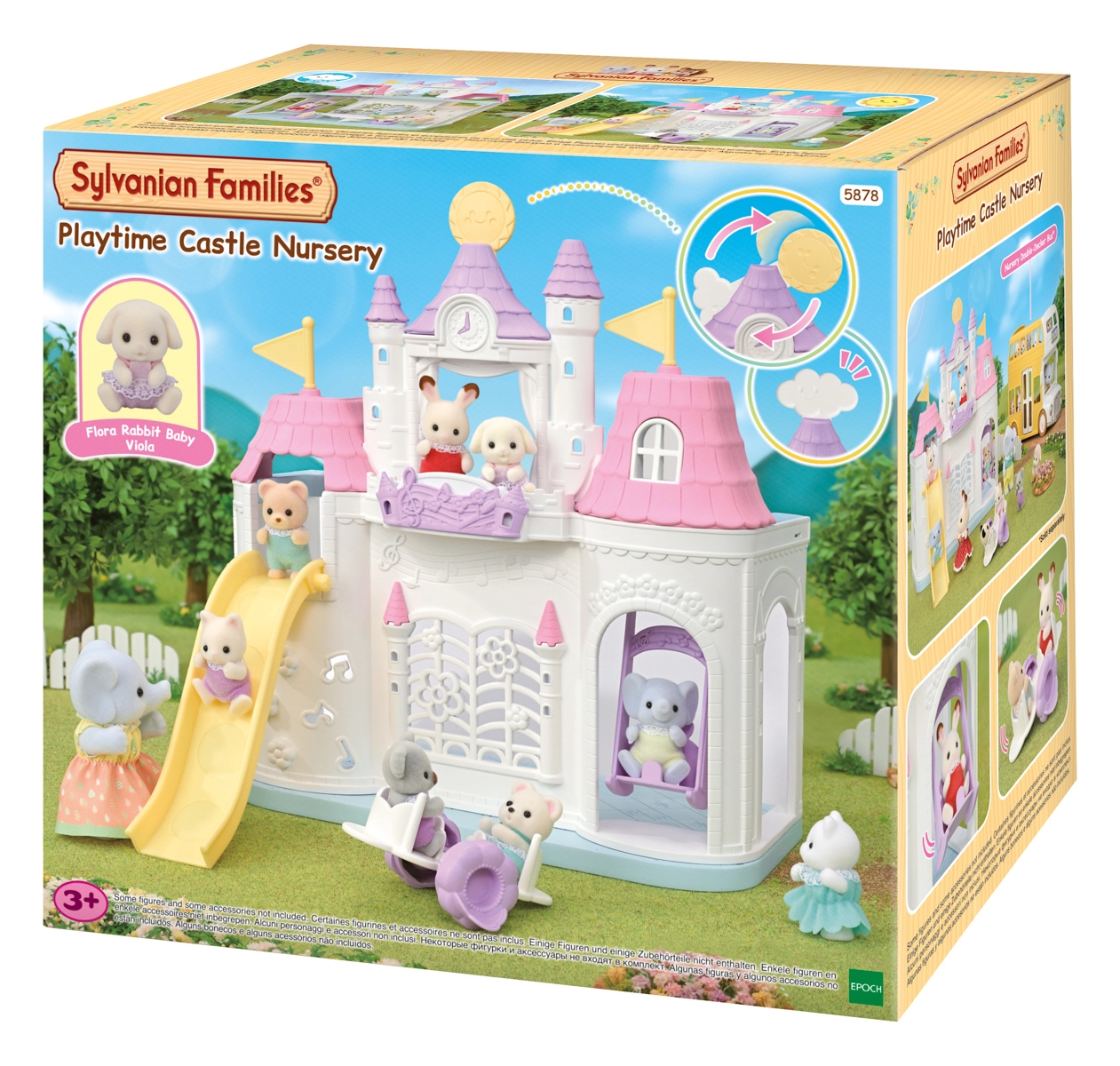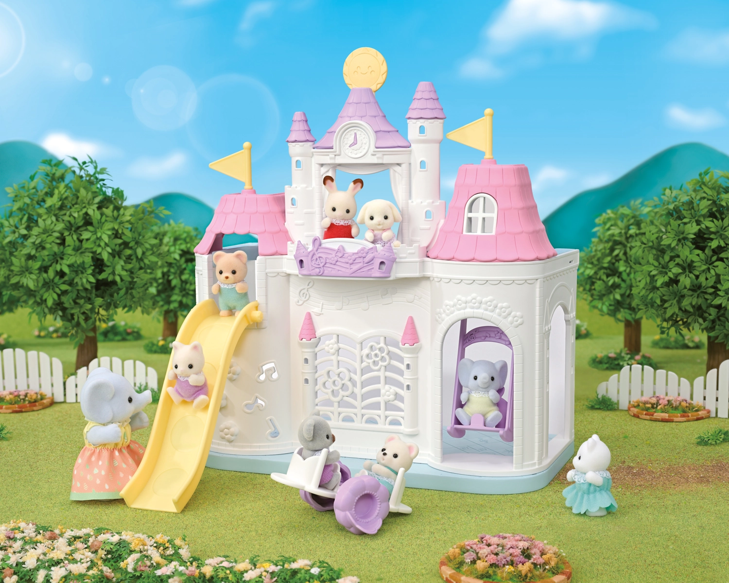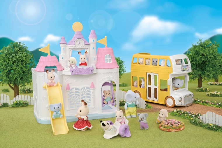 De schattige kasteelkleuterschool van SYLVANIAN FAMILIES biedt kinderen volop ruimte voor creatief spel – met een glijbaan, schommel en wip, die kan worden omgebouwd tot een tafel met stoeltjes. Inclusief zittende babyfiguur Flora Konijntje en een kamertje met weersverandering (zonnig/regenachtig), zodat kinderen zowel binnen als buiten kunnen spelen in hun verhalen. De zorgvuldige afwerking, beweegbare ledematen en verwisselbare kleertjes stimuleren fantasie en rollenspel.