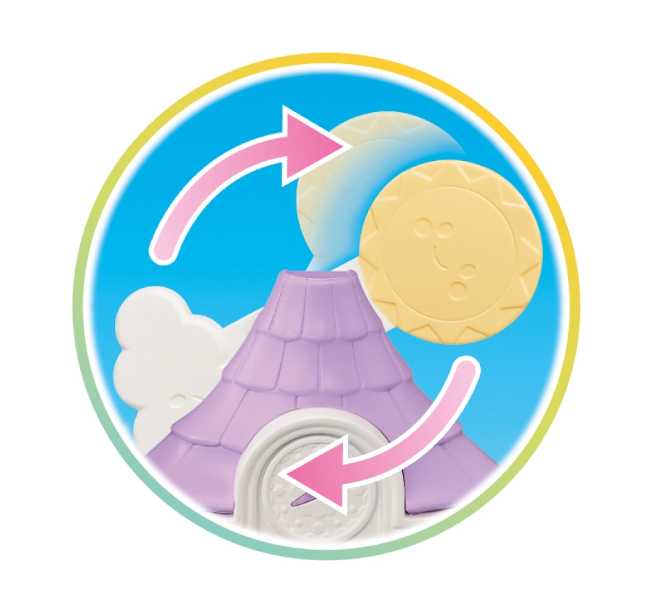 Schakel het weer om in het kinderkamertje en pas de boog op het dak en de accessoires daarop aan. Prikkelt de verbeelding en stimuleert het vertellen van verhalen.