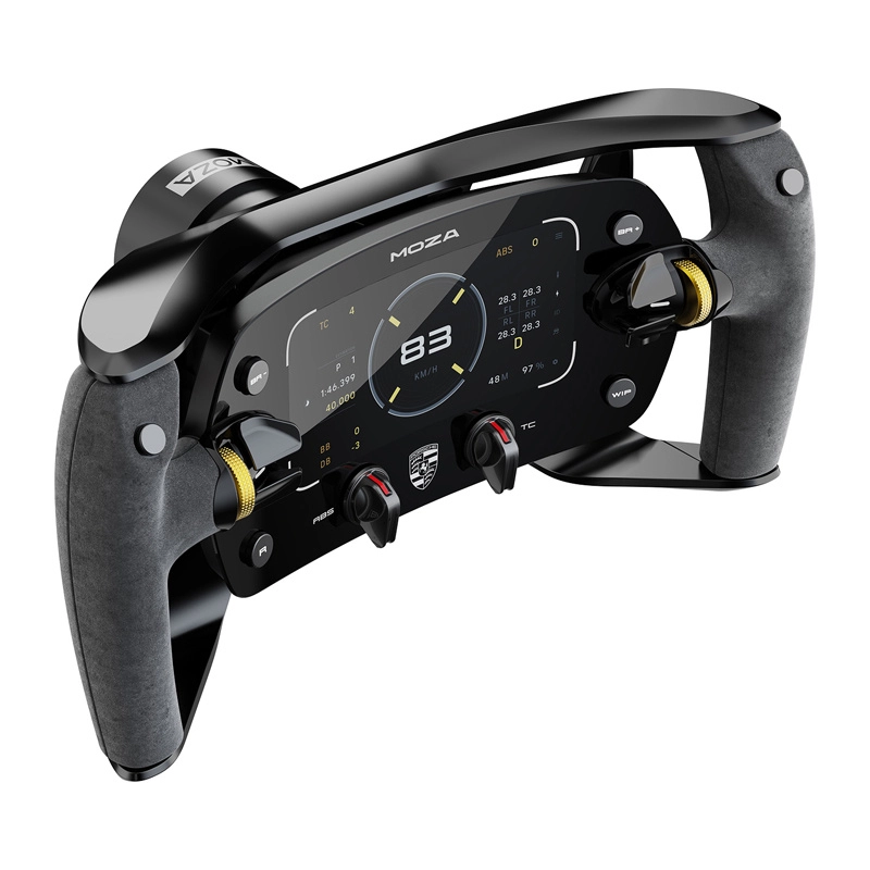 Het volledig CNC‑bewerkte aluminium frame met ergonomische grepen van suède‑kunstleer biedt zekerheid en comfort tijdens lange stints. Magnetische paddles met Hall‑sensors en ondersteuning voor enkele en dubbele koppeling maken precieze starts en schakelmomenten mogelijk. Dankzij het open ecosysteem en de snelkoppeling is het stuur klaar voor alle MOZA‑bases en via een hub ook voor platformen van derden.
