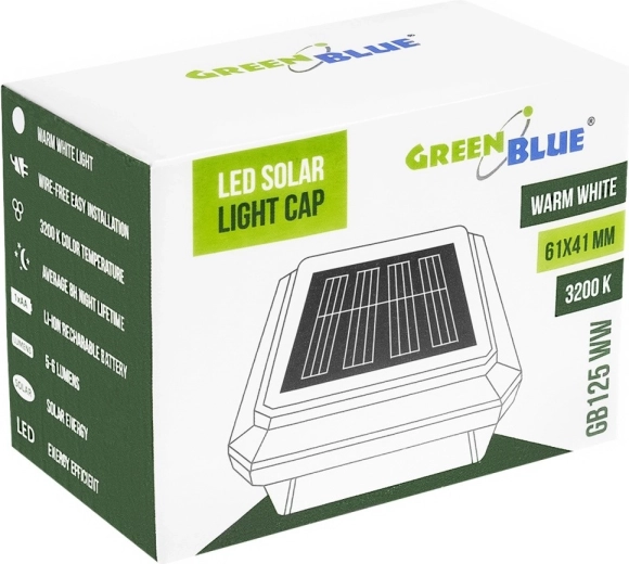 Zonne-LED paalkap 60 × 40 mm, warmwit 3200 K