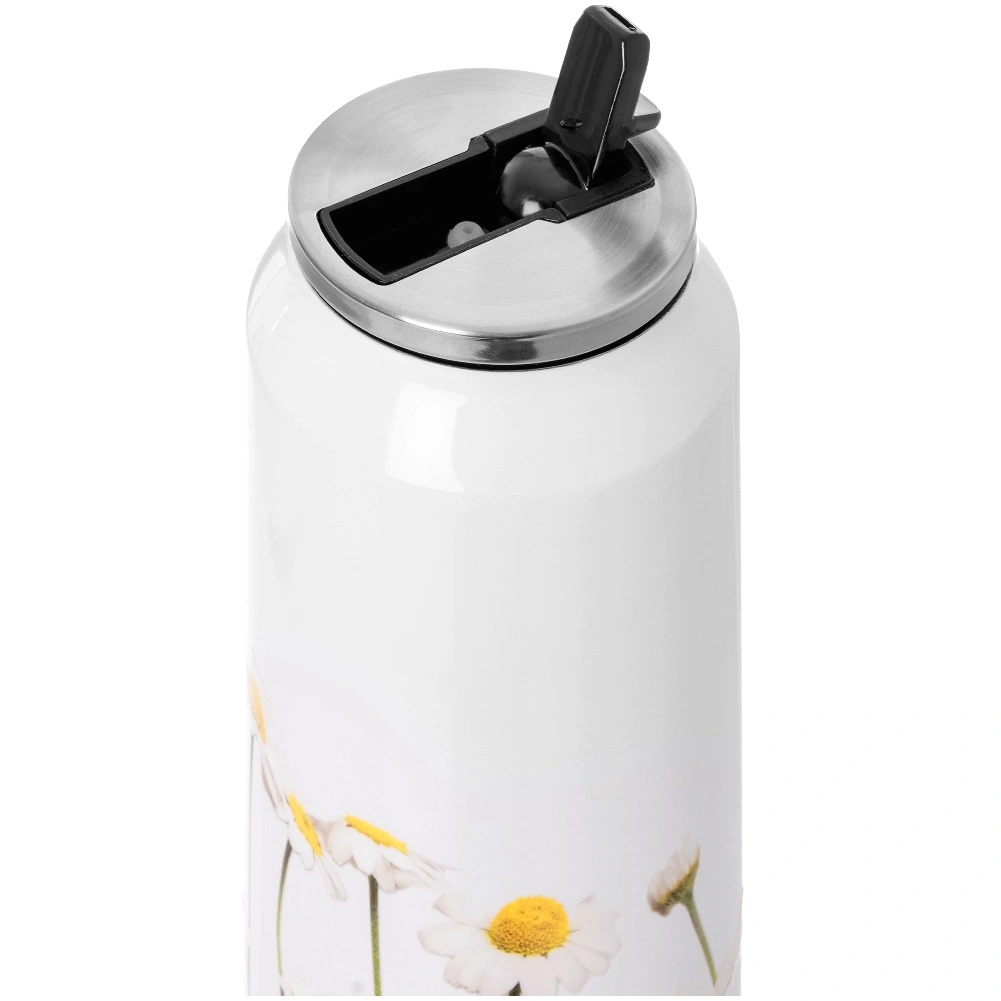 Het robuuste roestvrij staal in het wit met een bloemenpatroon zorgt voor duurzaamheid en eenvoudig onderhoud. De afdichtring in de deksel minimaliseert het risico op lekken – zo kun je de beker veilig in een rugzak of handtas opbergen. Voor de beste thermische prestatie de beker vóór gebruik voorverwarmen met heet water of vooraf koelen met koud water gedurende ca. 5 minuten.