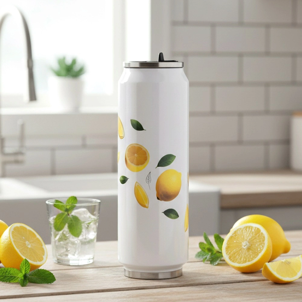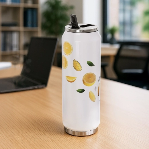 De praktische en elegante thermobeker in blikvorm is ideaal voor dagelijks gebruik, voor werk, school en onderweg. Dankzij de vacuümisolatie houdt hij de temperatuur van je favoriete drankje betrouwbaar vast, zowel in de zomer als in de winter. Het robuuste roestvrij staal zorgt voor duurzaamheid en een lange levensduur, terwijl het citroenmotief een frisse uitstraling geeft.