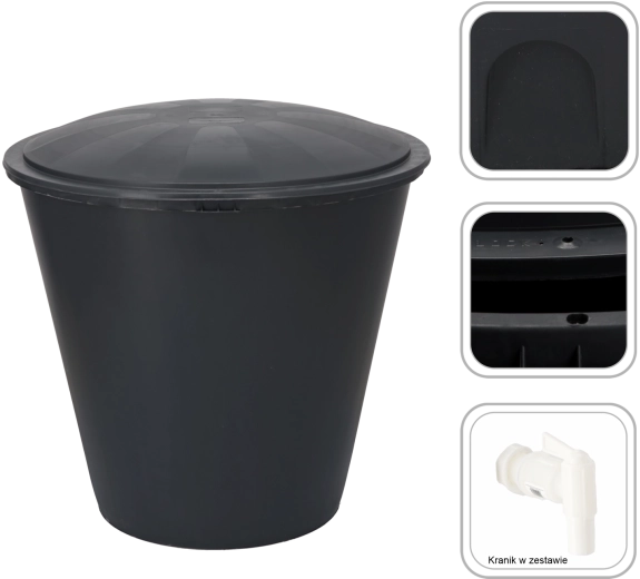 Een elegante en functionele oplossing voor het opvangen van regenwater bij het huis, in de tuin of bij de recreatiewoning. De ton in moderne antraciettint past perfect bij de gevel, schutting en tuinmeubelen, terwijl het nauwsluitende deksel het water schoon en gebruiksklaar houdt. Eenvoudig te onderhouden en dankzij het gladde oppervlak snel te reinigen.