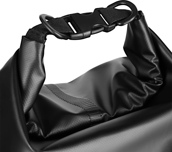 Stevig 500D PVC-materiaal, gelaste naden en een rolsluiting met clip houden de inhoud droog, zelfs bij intensieve wateractiviteiten.