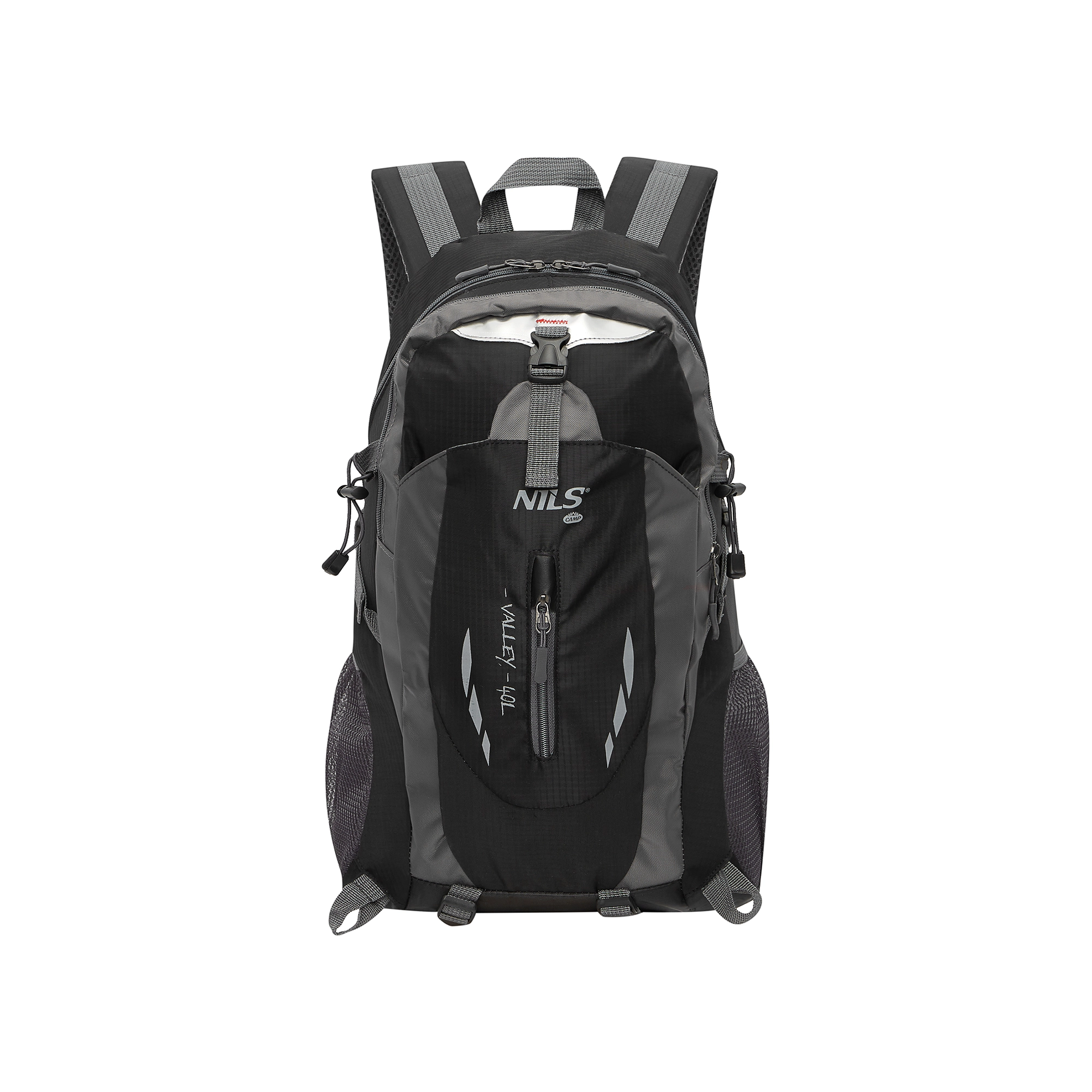 De NILS Camp Valley 40 l rugzak combineert een lichte constructie met duurzaam materiaal en een slimme indeling. Het hoofdvak met scheidingswand, drie ritsvakken en twee zijvakken van mesh houden je uitrusting overzichtelijk en veilig opgeborgen. Dankzij de spatwaterbestendigheid blijft de inhoud beschermd, ook bij onbestendig weer.