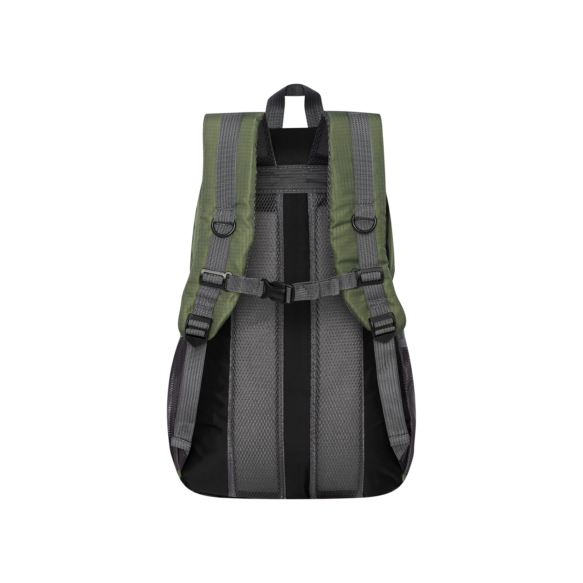 Compressie- en bodemriemen, houders voor trekkingstokken en een verstelbare borstriem houden de lading stevig en in balans.