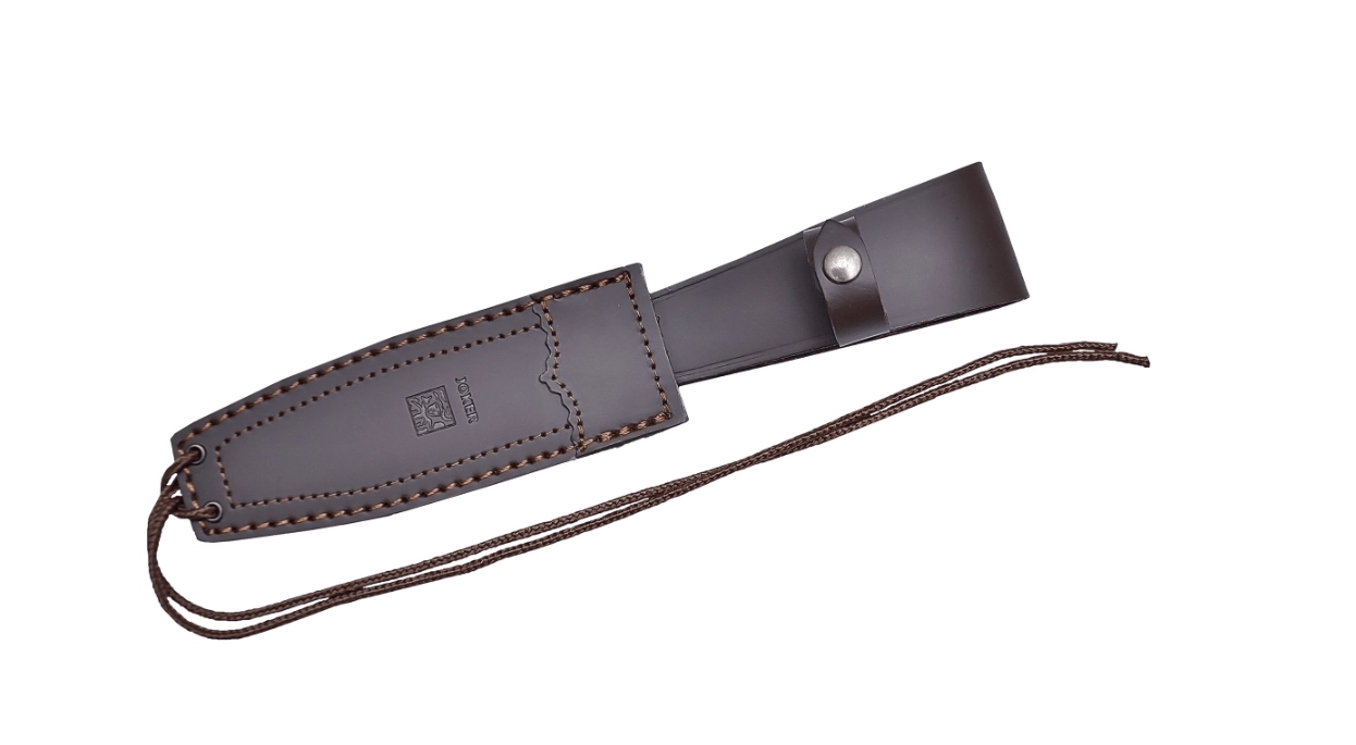 De handgreep van echt hertengewei ligt uitstekend in de hand en geeft het mes een traditionele uitstraling. Het mes wordt geleverd met een hoogwaardig leren foedraal voor veilig dragen en met een koord met gewei-kraal voor praktische bevestiging.