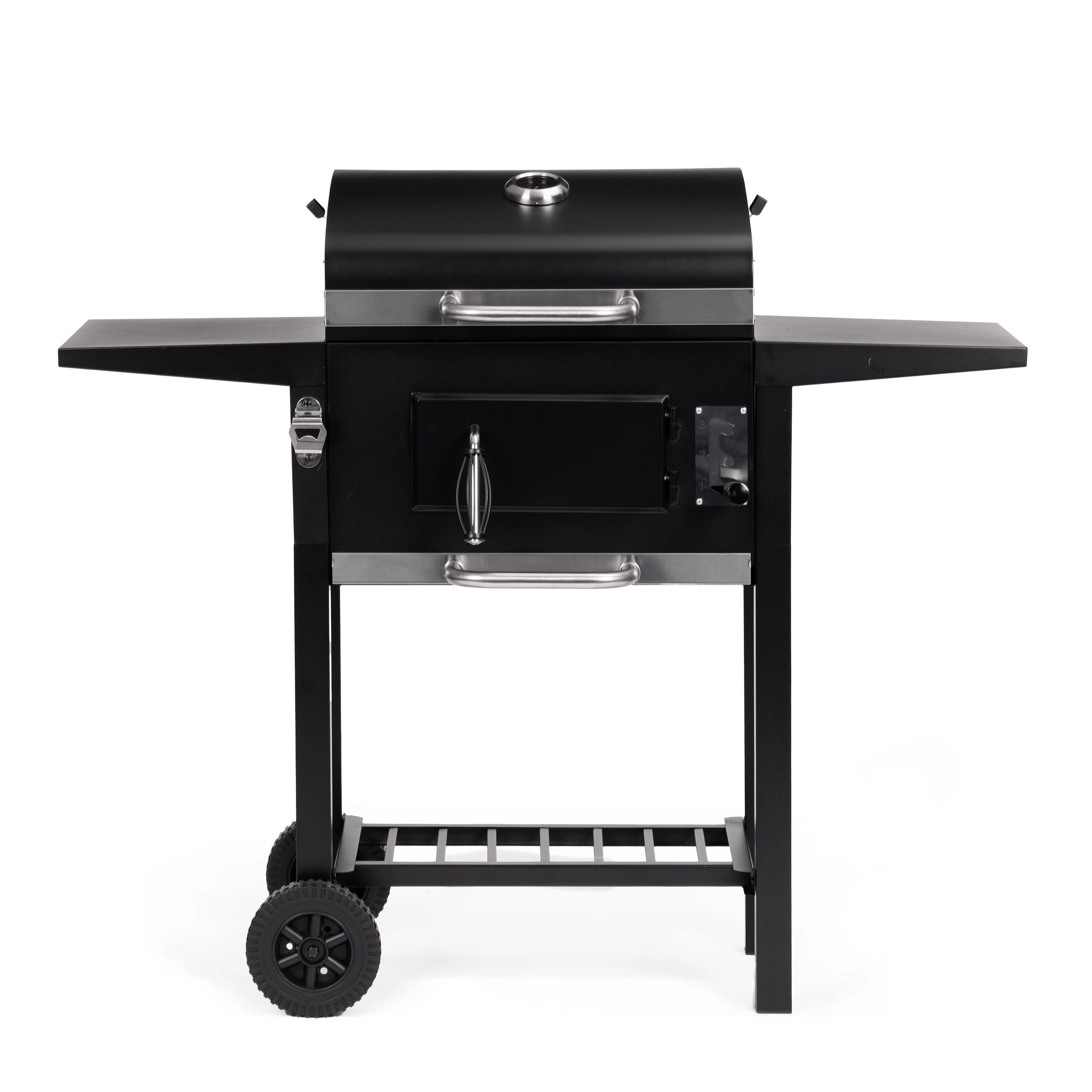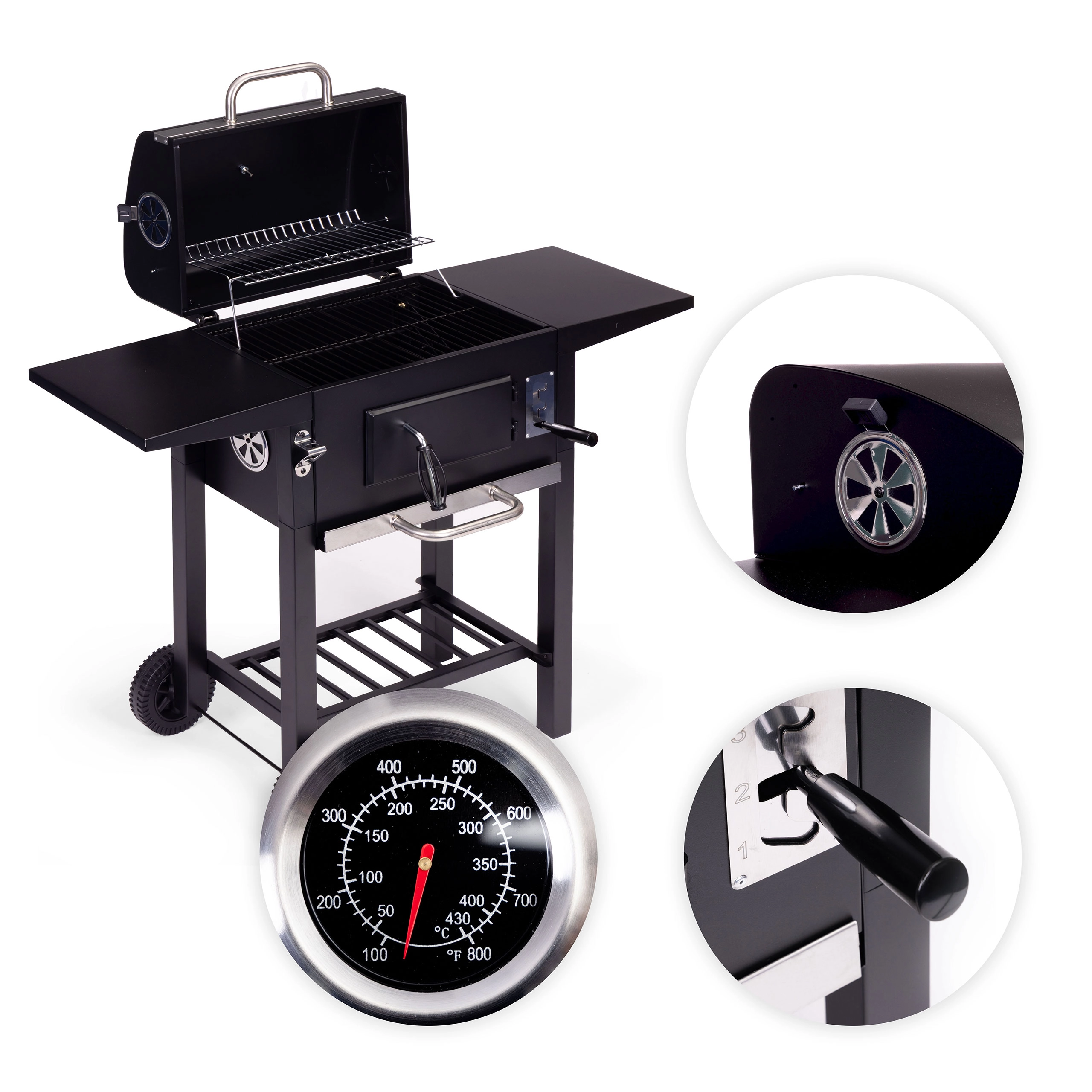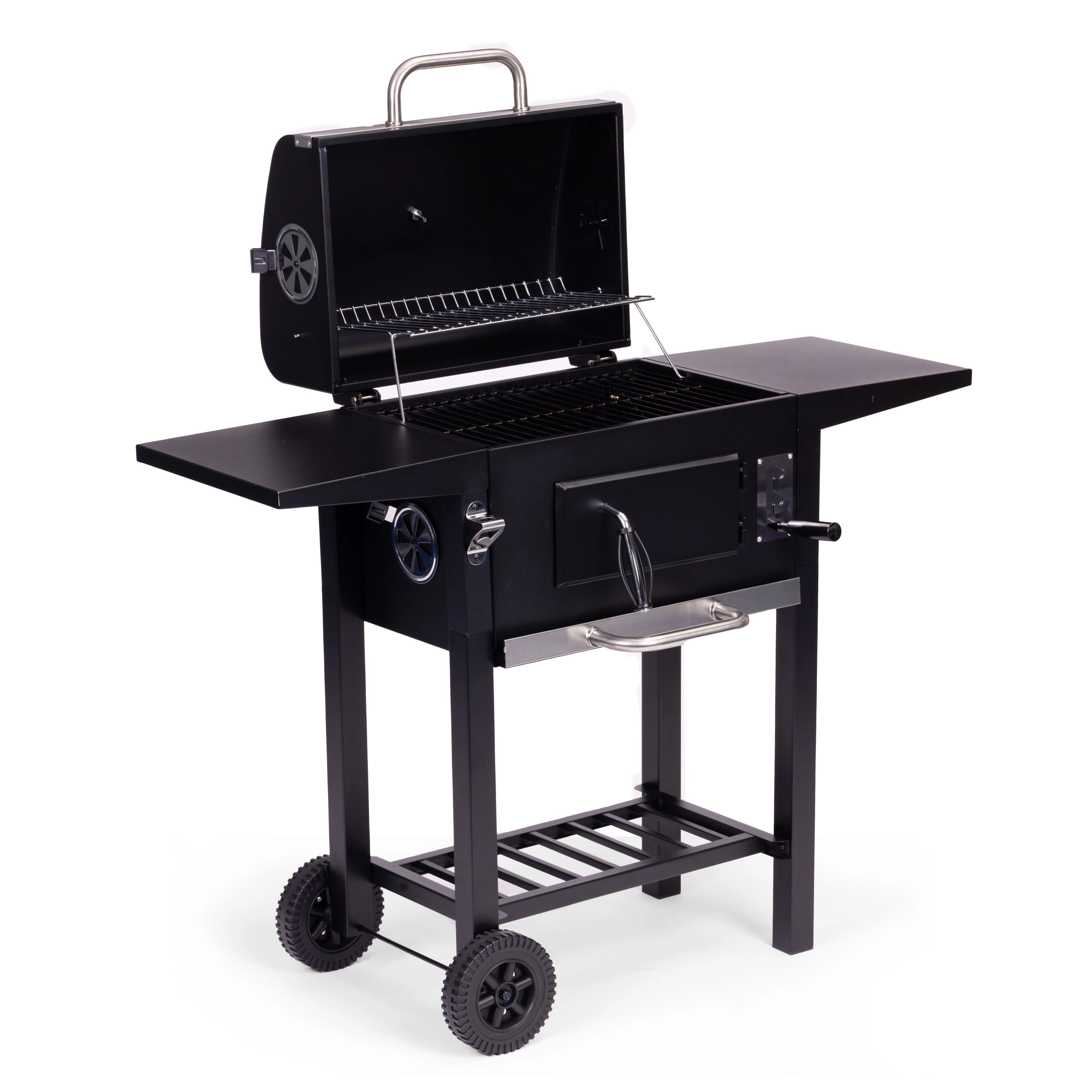 Met de roosterhoogteverstelling in 3 niveaus en ventilatieopeningen regel je het vermogen nauwkeurig – van krachtig dichtschroeien tot zacht opwarmen. Transportwielen maken het eenvoudig om de barbecue naar de ideale plek te verplaatsen. De praktische flesopener is een aangename extra voor gezellige momenten met familie en vrienden.