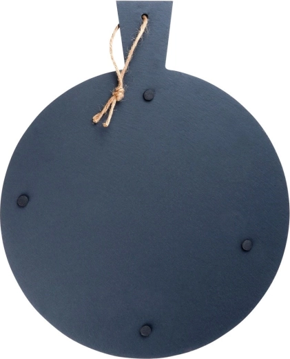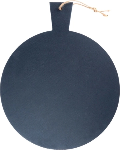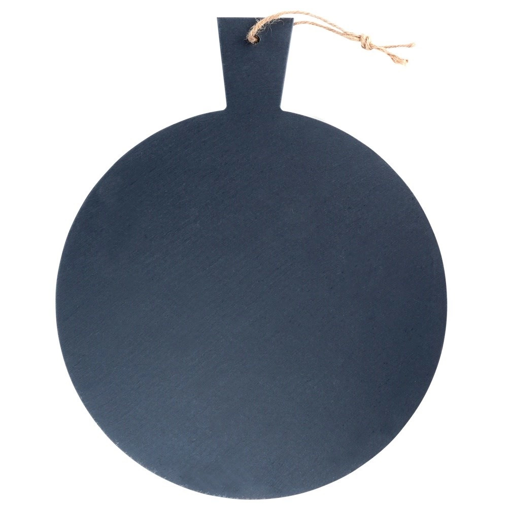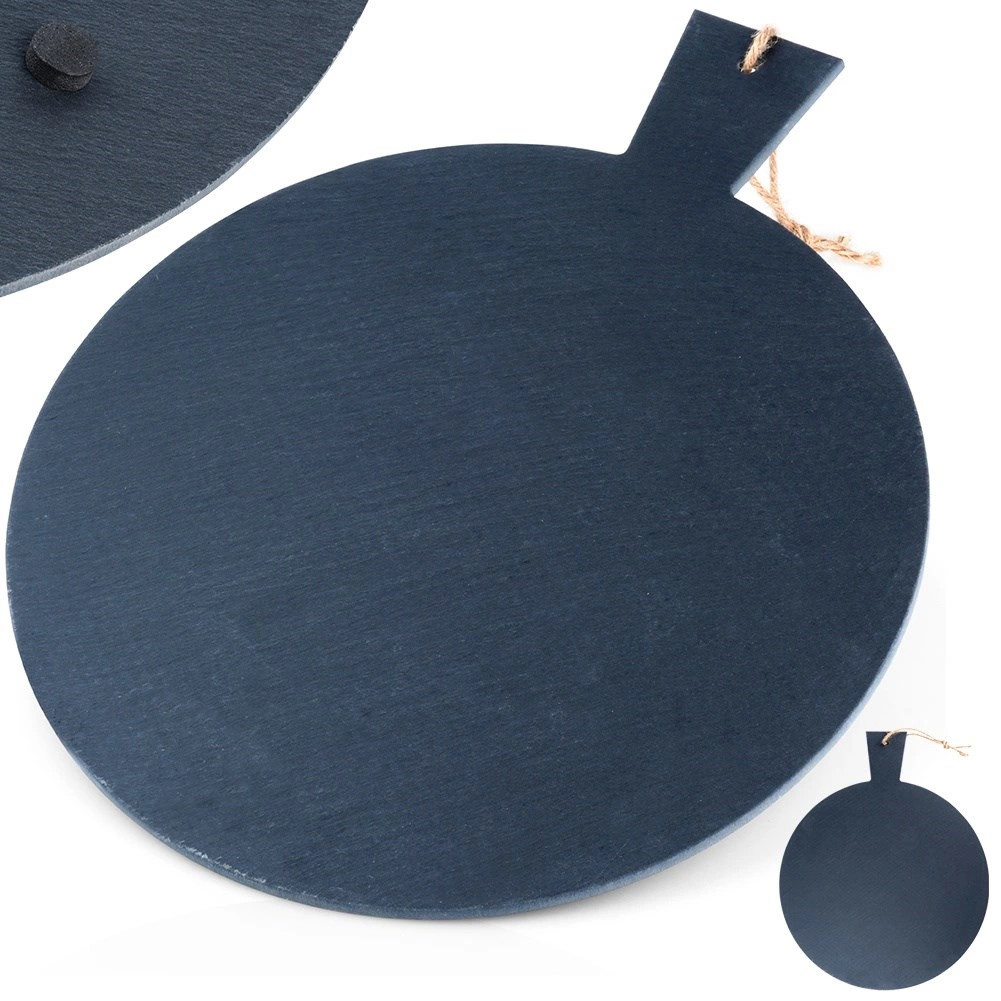 Elegante serveerplank van natuurlijke leisteen met een praktisch handvat en ophanglus. Het duurzame stenen oppervlak is ideaal voor kazen, vleeswaren, desserts en voorgerechten, houdt de temperatuur uitstekend vast en blijft dankzij antislip voetjes stabiel op tafel.