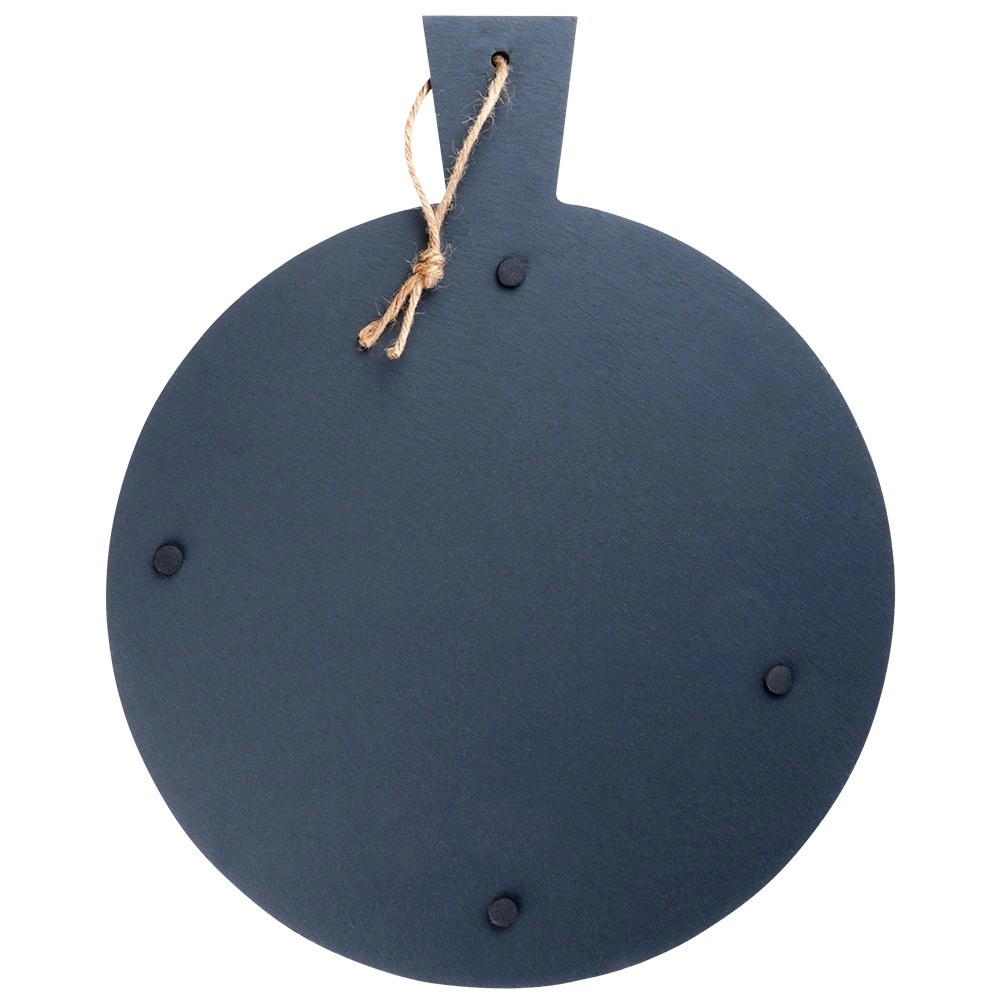 Verhoog de presentatie van uw gerechten met de ronde leisteenplank van 43 × 34 cm. De natuurlijke steen in elegante zwarte kleur met licht gestructureerd oppervlak en geslepen randen oogt tijdloos en past perfect bij elke tafelsetting.