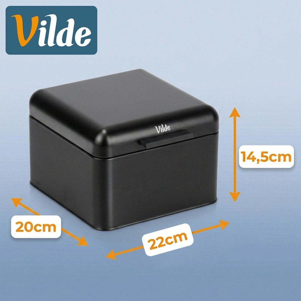 Stijlvolle metalen broodtrommel in matzwart houdt je brood en gebak langer vers. Dankzij het stevige klepdeksel op scharnieren wordt effectief beschermd tegen uitdroging, bespaart het ruimte op het aanrecht en vult het met zijn moderne design elke keuken perfect aan. De compacte afmetingen 22 × 20 × 14,5 cm zijn ideaal voor een kleiner brood, broodjes of koekjes.