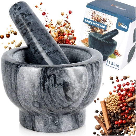 Duurzame granieten vijzel met stamper voor het eenvoudig pletten en malen van kruiden, specerijen en zaden. Natuursteen zorgt voor stabiliteit, een lange levensduur en uitstekende resultaten. Ongepolijste binnenkant van de kom en onderzijde van de stamper voor effectief pletten, zelfs van hardere ingrediënten. Eenvoudig te onderhouden en tijdloos design voor elke keuken.