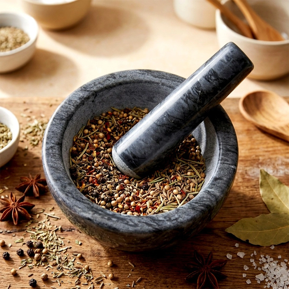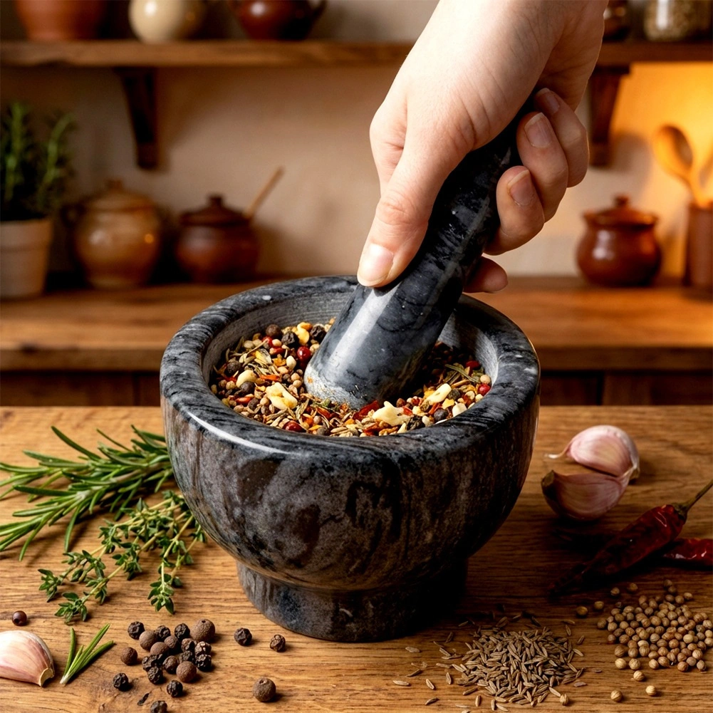 - Veelzijdig gebruik: specerijen, kruiden, zaden, noten, het bereiden van pesto en pasta’s.
