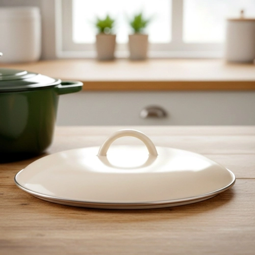 Praktisch deksel van hoogwaardige geëmailleerde staal in een elegante crèmekleur is een ideale aanvulling op kookgerei zonder bijgeleverd deksel. Dankzij de stevige uitvoering houdt het warmte en vocht effectief vast, verkort het de kooktijd en beperkt het spatten van water en vet in de keuken.
