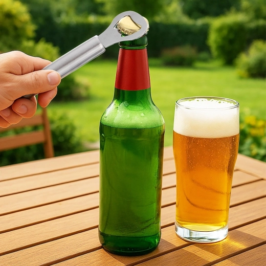 De cilindrische greep ligt uitstekend in de hand en maakt soepel verwijderen van de kroonkurk mogelijk zonder wegglijden of moeite.