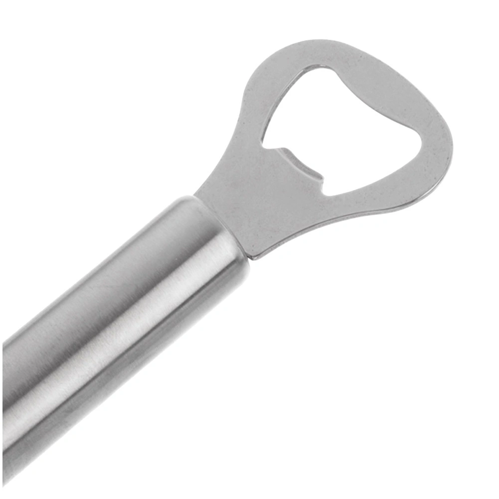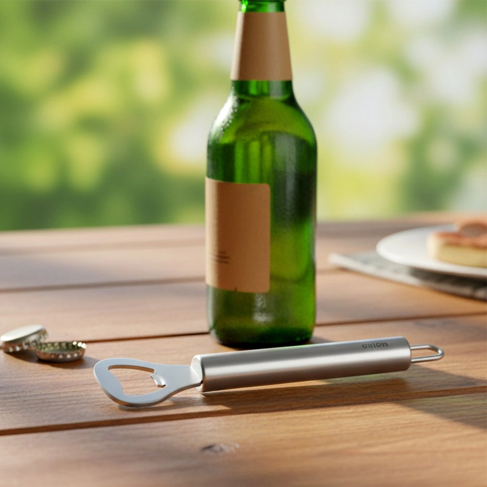 De robuuste opener van roestvrij staal in modern zilverkleurig design is ontworpen voor dagelijks gebruik. De ergonomisch gevormde, cilindrische handgreep ligt perfect in de hand en maakt snel en soepel openen van flessen zonder inspanning mogelijk. Het ophangoog zorgt voor praktische opslag aan een haak of reling, zodat u de opener altijd bij de hand heeft.
