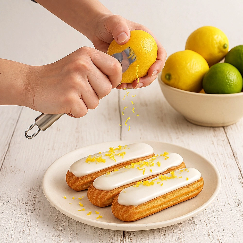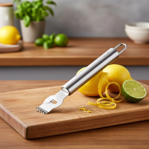 Ontdek een veelzijdig keukentool dat zowel fijn schillen kan raspen als langere reepjes kan maken voor het decoreren van desserts, cocktails en hartige gerechten. De RVS-constructie zorgt voor lange levensduur, hygiëne en eenvoudig reinigen, terwijl het ergonomische handvat prettig in de hand ligt.