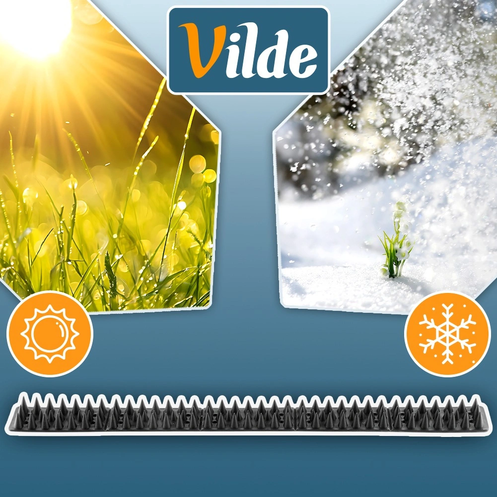 De spikes zijn gemaakt van hoogwaardige, weerbestendige kunststof die bestand is tegen UV-straling, regen en sneeuw en geschikt is voor langdurig buitengebruik. Dankzij 115 spikes per strip ontstaat een compacte barrière die dieren afschrikt zonder letsel te veroorzaken.