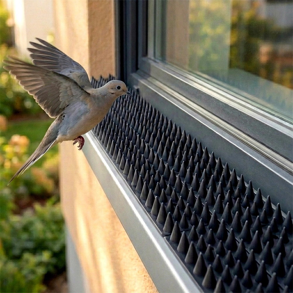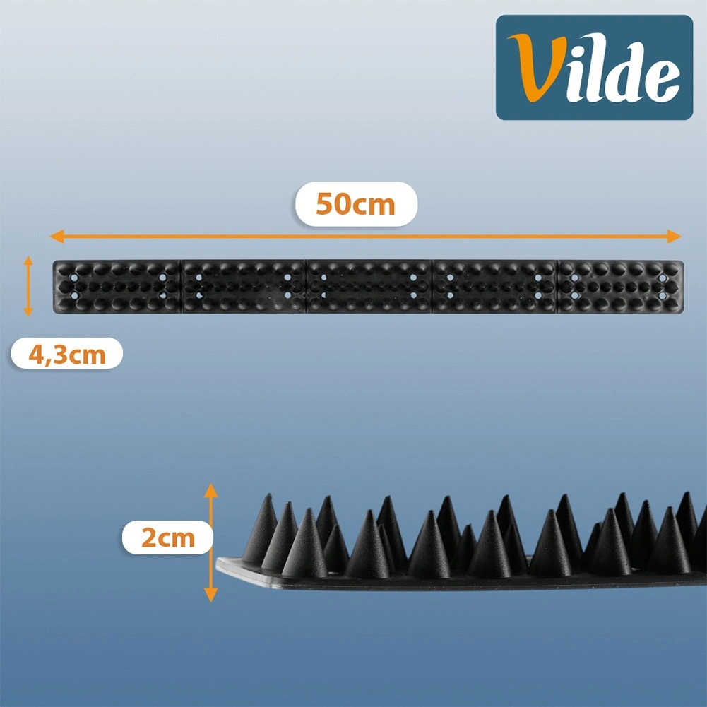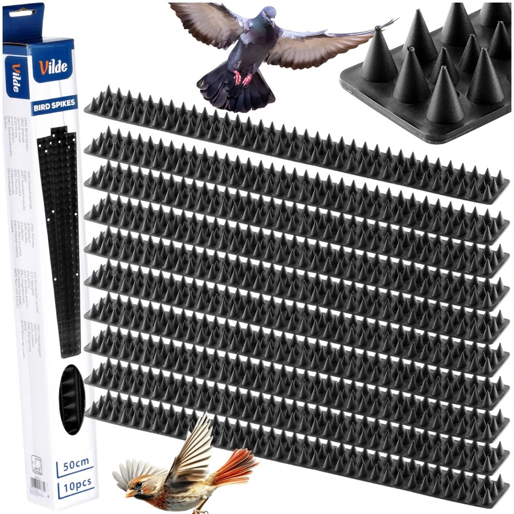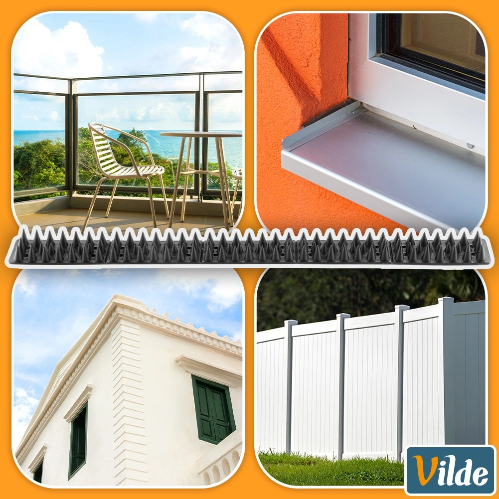 Elke strip van 50 cm heeft ongeveer 115 spikes die een aaneengesloten barrière vormen tegen het landen van vogels en het klimmen van katten.