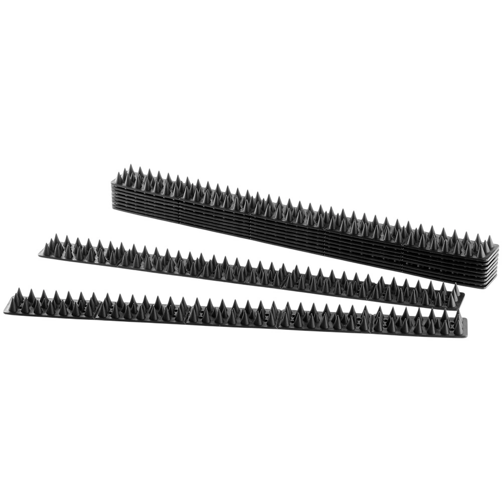 Houd de omgeving rond ramen, balkons en hekken schoon en vrij van ongewenste bezoekers. Deze set van 10 strips met dichte spikes van duurzame kunststof in het zwart biedt een betrouwbare preventie tegen landende vogels en klimmende katten. Het modulaire ontwerp maakt een nauwkeurige aanpassing van lengte en vorm van de te beschermen rand mogelijk.