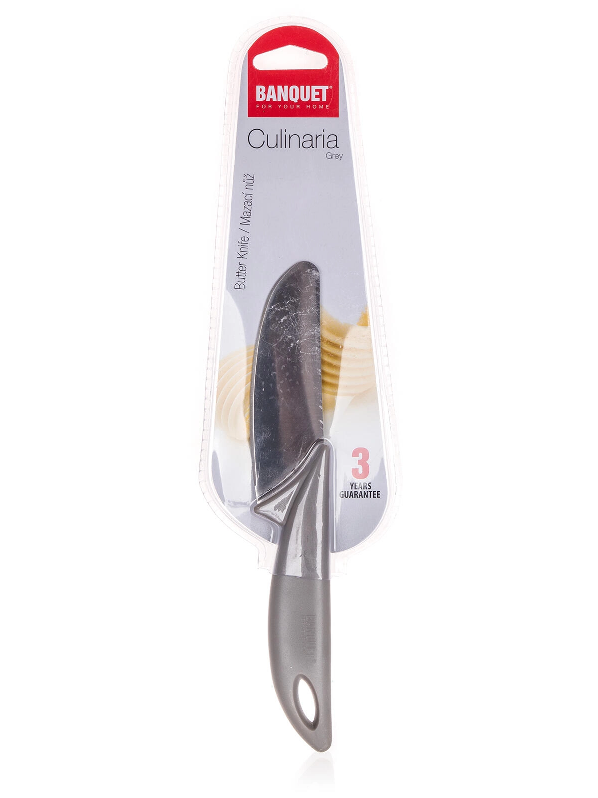 Het Culinaria Grey smeermes combineert een duurzaam stalen lemmet met een ergonomische kunststof handgreep voor aangename hantering. Dankzij de lemmetbreedte van 1,5 cm is het perfect voor gelijkmatig aanbrengen van boter, crèmes, patés en andere spreads op brood en gebak.