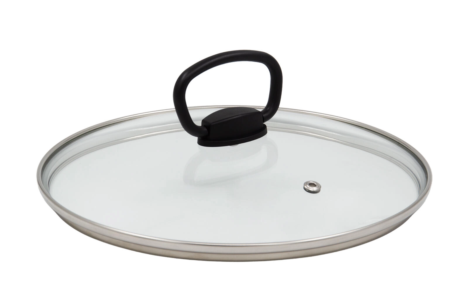 Praktisch glazen deksel SMART PLUS met een diameter van 22 cm, ideaal voor pannen en potten van dezelfde grootte. Biedt hoogwaardig gehard glas, een hittebestendige opklapbare nylon greep en een stoomontlastingsopening, waardoor koken comfortabeler en veiliger verloopt.