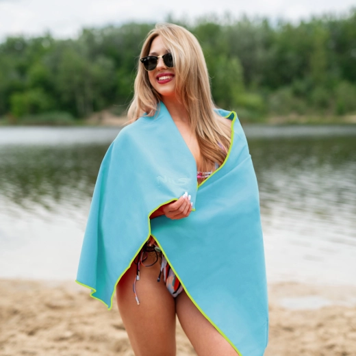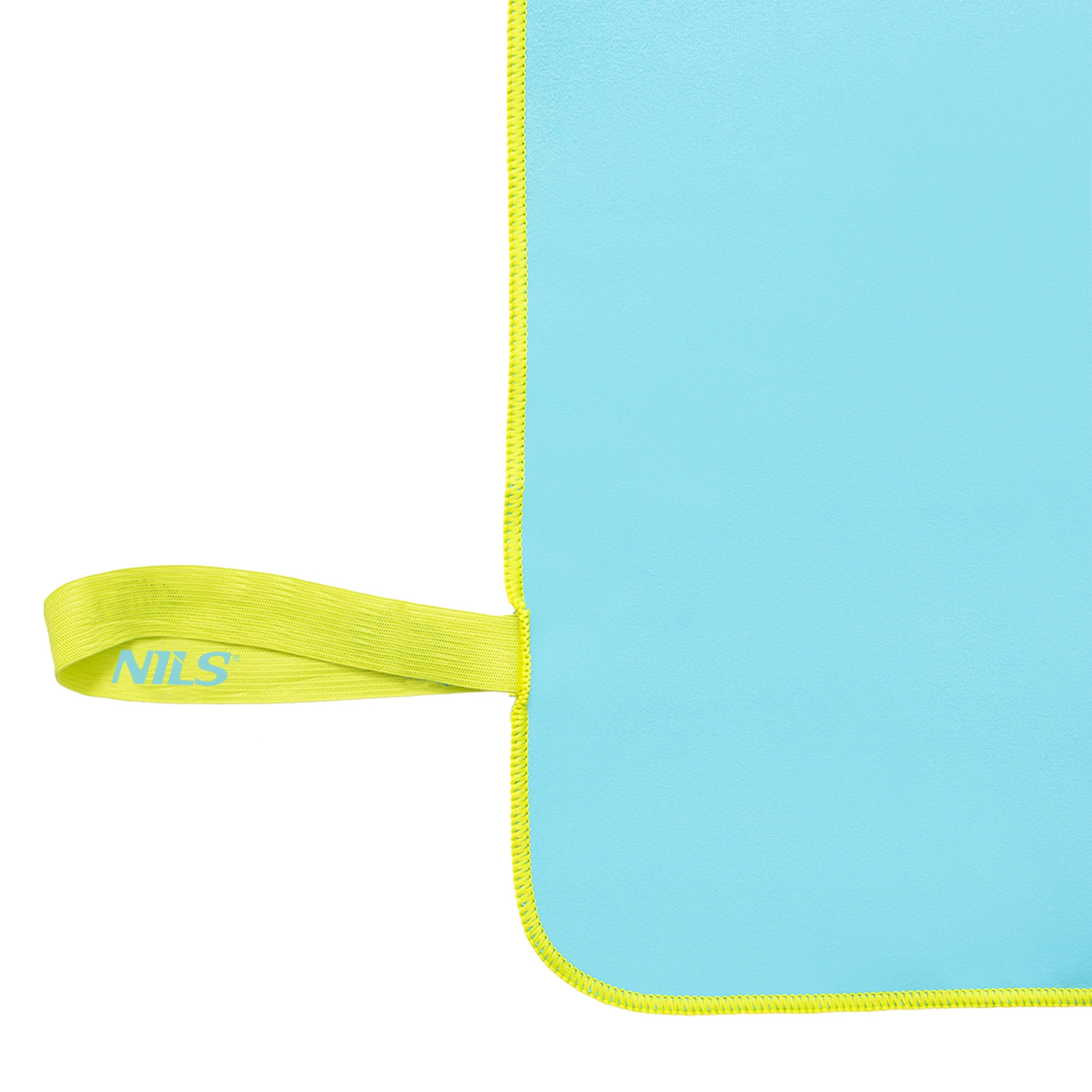 Lichte en compacte microvezelhanddoek van NILS Camp in blauw‑groene kleur, absorbeert uitstekend en droogt razendsnel. Dankzij de poreuze structuur neemt hij snel water op, is super absorberend, sneldrogend en na opvouwen zeer compact – ideaal voor op vakantie, aan het water, in de fitness of bij het kamperen.