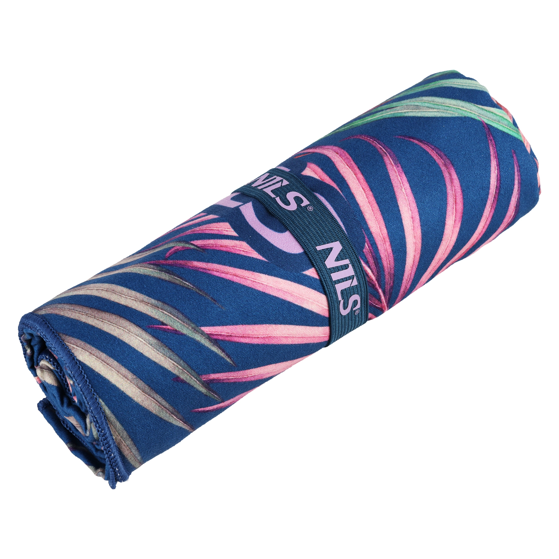Lichte en compacte microvezelhanddoek van NILS Camp met tropisch design biedt extra absorptie, sneldrogend en minimale ruimtebeslag. Dankzij de poreuze structuur neemt hij effectief water op, voelt prettig aan en is perfect voor reizen, aan het water, in de fitness en bij het kamperen. Een praktische elastiek voor fixatie en duurzame afwerking zorgen voor een lange levensduur en gemakkelijk onderhoud.