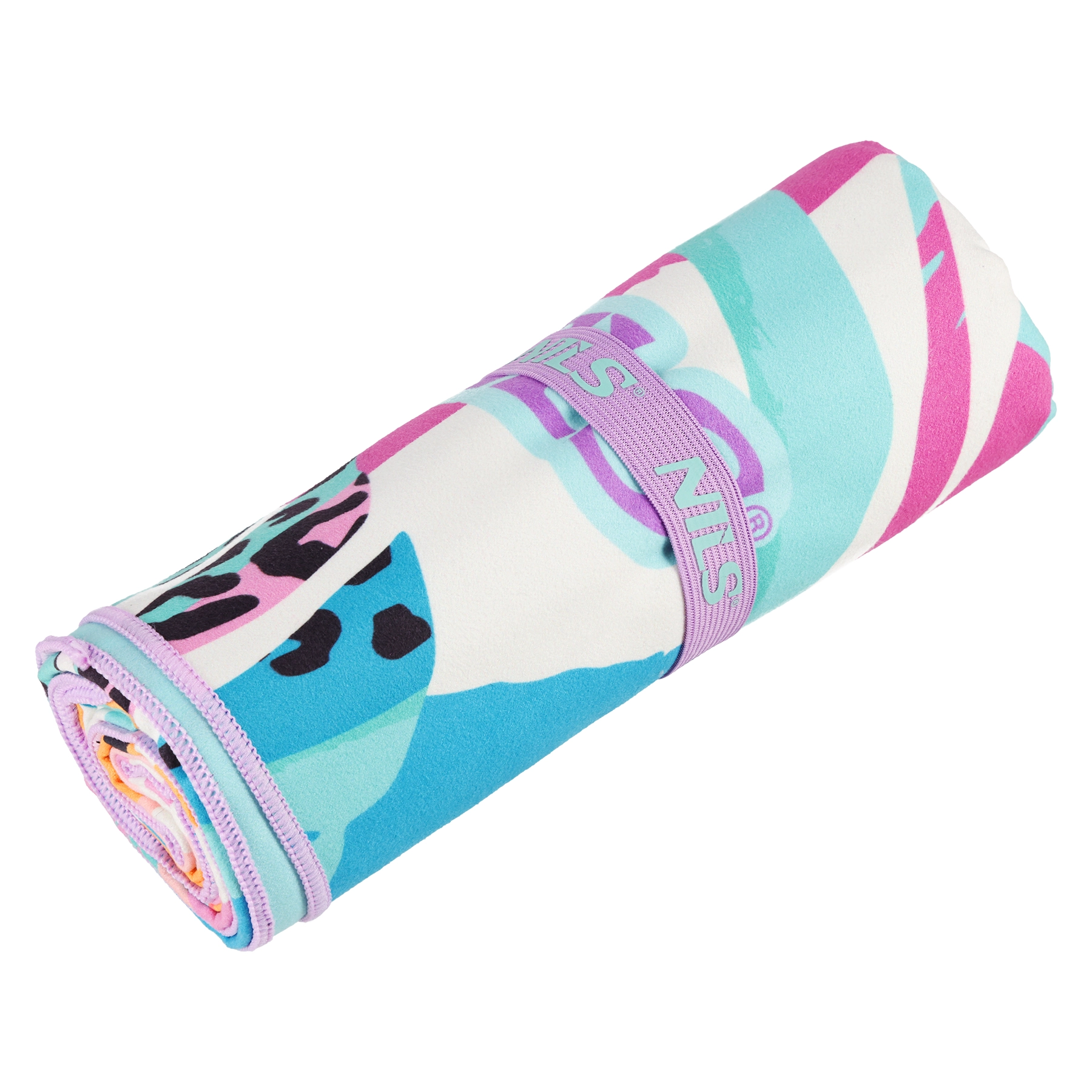 De praktische elastiek in de hoek houdt de handdoek stevig opgerold. Je stopt hem makkelijk in een rugzak of sporttas en bespaart kostbare ruimte.