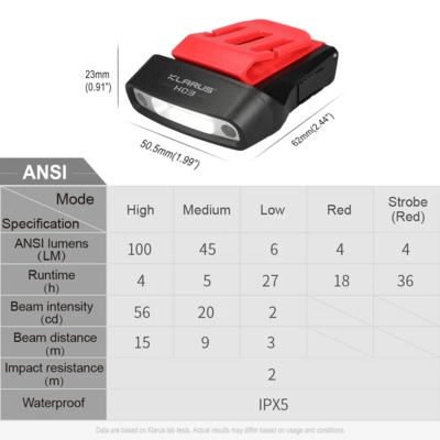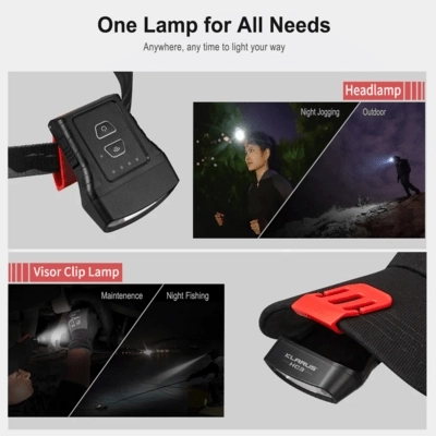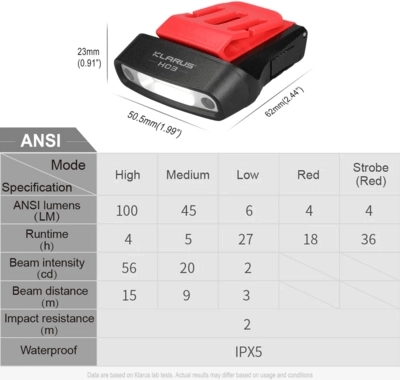 Dankzij de COB LED met een maximaal vermogen van 100 lm en een bereik van 15 m krijg je een brede, gelijkmatige lichtbundel met aangenaam daglichtwit (≈4500 K) en discreet rood om het nachtzicht te behouden. De verstelbare clip maakt een kanteling van 0–180° mogelijk, zodat je het licht altijd richt waar je het nodig hebt. De constructie is bestand tegen vallen tot 2 m en voldoet aan de IPX5-norm voor waterbescherming.