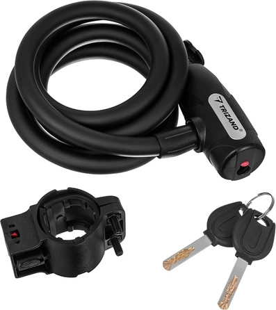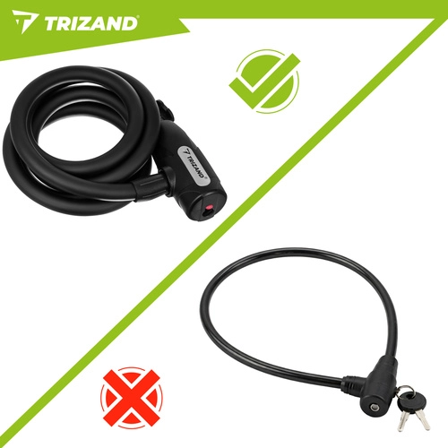Beveilig je fiets, step of kinderwagen veilig met het TRIZAND-slot met een lengte van 150 cm en een diameter van 12 mm. De duurzame staalkabel met een PVC-coating voorkomt krassen op het frame, het scharenslot met sleutel zorgt voor snel en betrouwbaar vergrendelen en de spiraalconstructie vergemakkelijkt het transport. Inclusief framehouder en 2 sleutels.