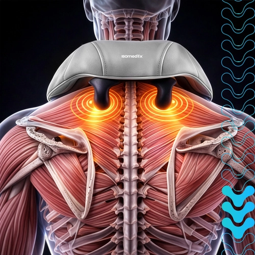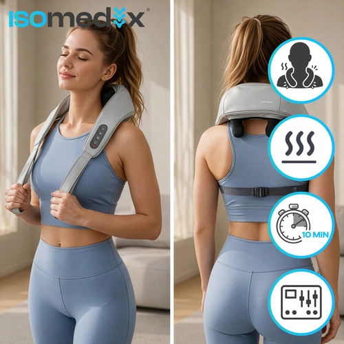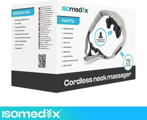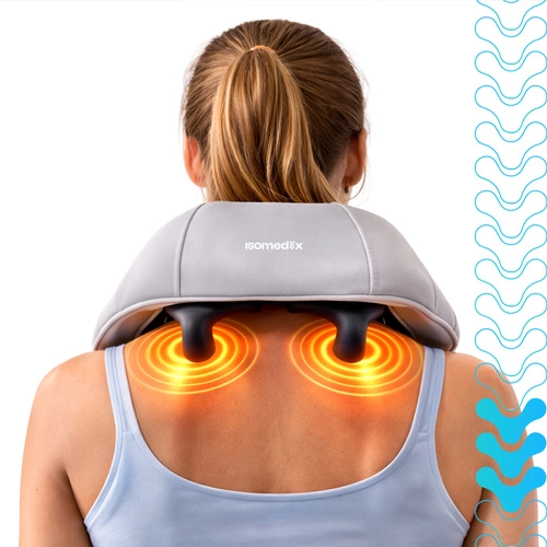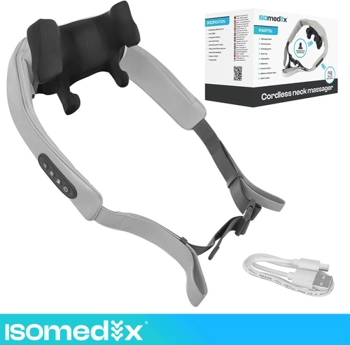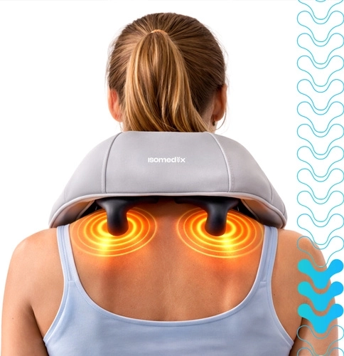 Verlicht spanning in nek, schouders en rug altijd en overal met het draadloze massageapparaat ISOMEDIX. Het combineert diepe shiatsu-kneedmassage, verwarming en eenvoudige bediening voor snelle regeneratie en ontspanning. Dankzij de batterij met tot 120 minuten gebruik en USB‑C-opladen is het ideaal voor thuis, op kantoor en onderweg.