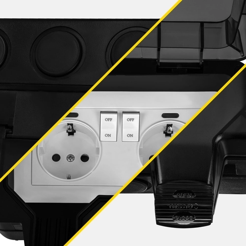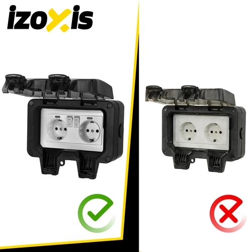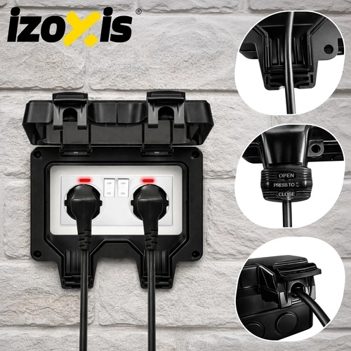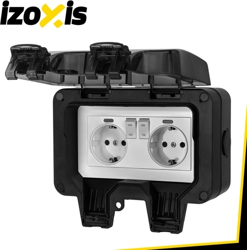 IZOXIS dubbele buitenstopcontact is een betrouwbare en veilige oplossing voor het voeden van apparaten in de tuin, garage en werkplaats. Dankzij de IP66-bescherming en de robuuste ABS-constructie is het water- en stofdicht, kunt u twee apparaten tegelijk aansluiten en is veilige werking bij 230–250 V / 16 A met een vermogen tot 3680 W gegarandeerd.