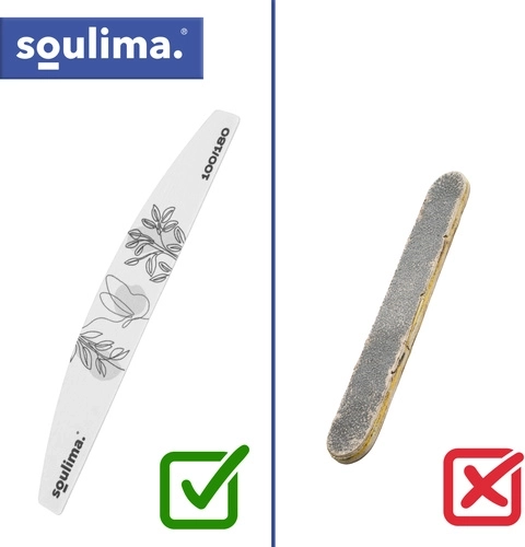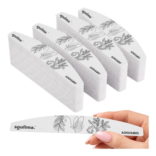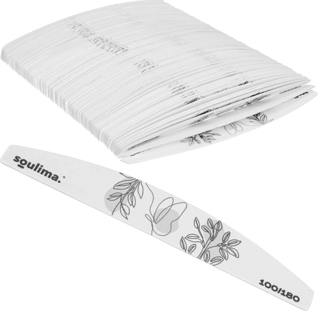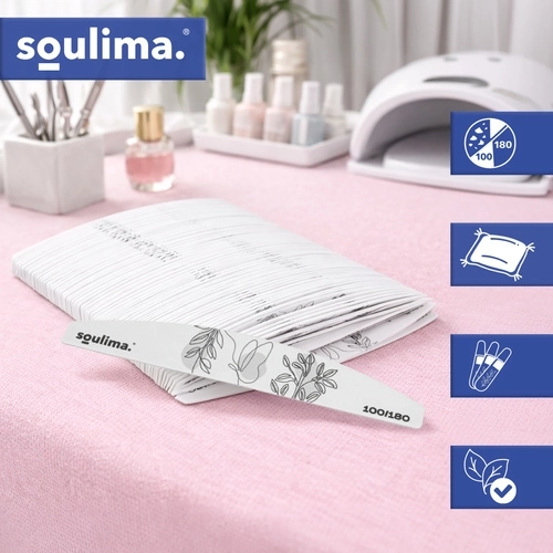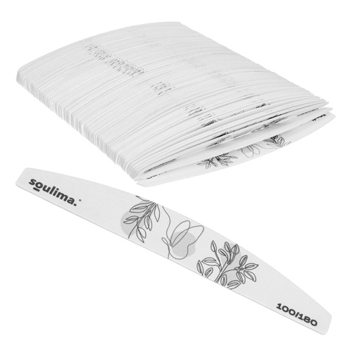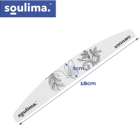 De SOULIMA 100/180 vijlen set is een praktische en economische oplossing voor perfecte manicure en pedicure. Het dunne slim design en de gebogen boot vorm vergemakkelijken het werk nabij de nagelriem en verbeteren de controle over de nagelvorm. De dubbele korrel maakt zowel snel inkorten (100) als fijn polijsten van het oppervlak (180) mogelijk.