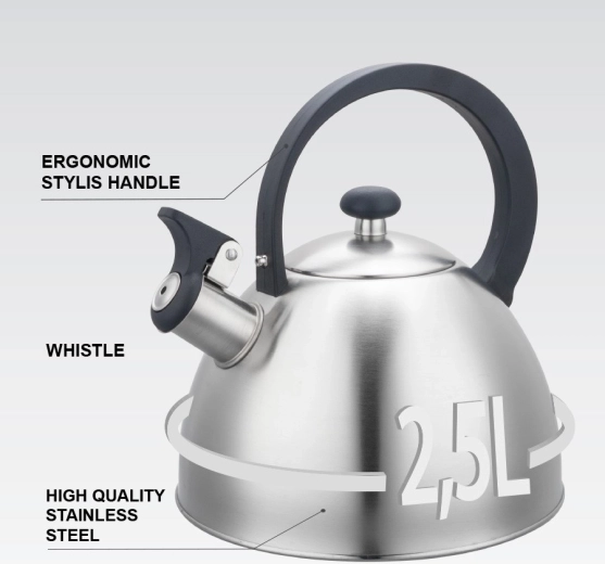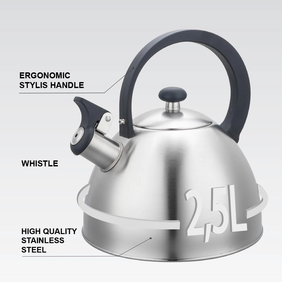 Zoekt u een duurzame en stijlvolle ketel voor dagelijks gebruik? Deze RVS MAESTRO-theeketel biedt een royale inhoud van 2,5 liter, zodat u in één keer warme dranken voor het hele gezin kunt bereiden. De fluit waarschuwt u betrouwbaar bij het kookpunt, terwijl de ergonomische handgreep zorgt voor veilig en comfortabel schenken.