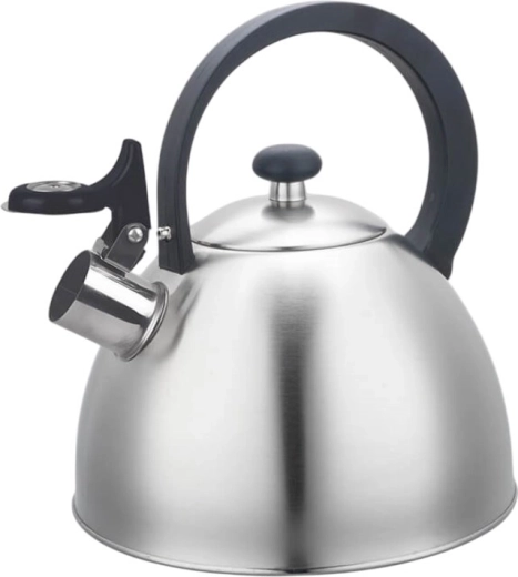 Ergonomische handgreep met hendel voor het openen van de tuit en een fluit die het kookpunt aankondigt.