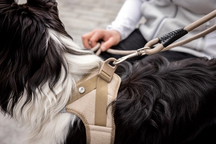 Stijlvol tuig met corduroy‑toplaag en lichte Air‑Mesh die comfortabel dragen tijdens dagelijkse wandelingen garandeert. Dankzij de slimme gesp bevestig je lijn en tuig in één beweging, zonder het luidruchtige “klikken” van klassieke D‑ringen. Het ontwerp focust op veiligheid, ergonomie en bewegingsvrijheid.