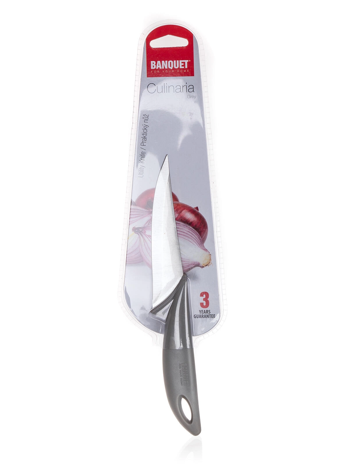 Universeel keukenmes met een lemmetlengte van 12 cm uit de collectie CULINARIA GREY is een uitstekende hulp voor dagelijks snijden en portioneren. Biedt een stalen lemmet voor een zuivere snede en een comfortabele kunststof handgreep voor een veilige grip. Ideale keuze voor elke keuken voor snel en precies verwerken van ingrediënten.