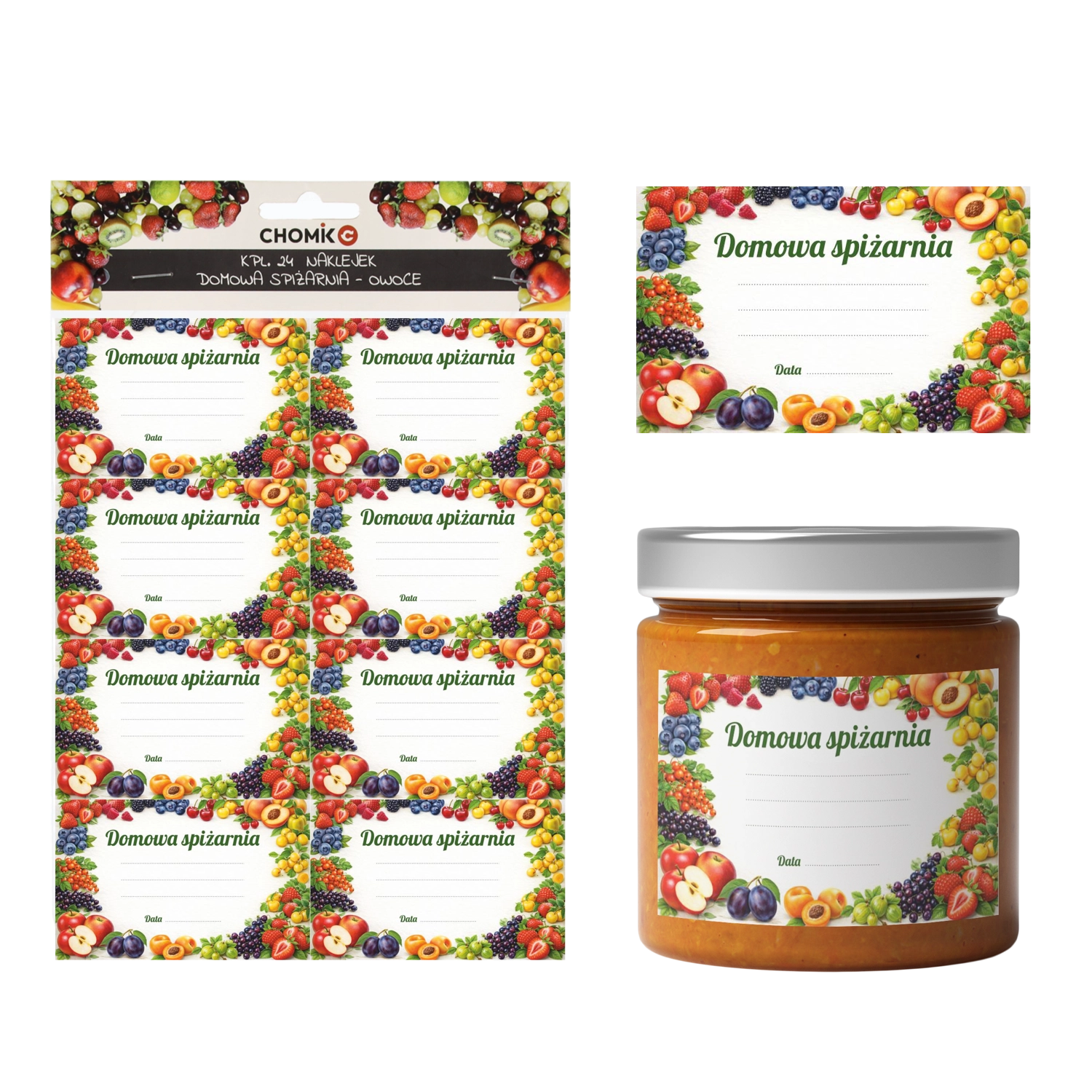 De stickerset „Domowa Spiżarnia – Owoce” is een ideale keuze voor het thuis maken van jams, marmelades, sappen en compotes. Elk etiket met een diameter van 5 cm heeft een aantrekkelijk fruitmotief en praktische schrijfruimte, zodat je eenvoudig de receptnaam en productiedatum kunt toevoegen.