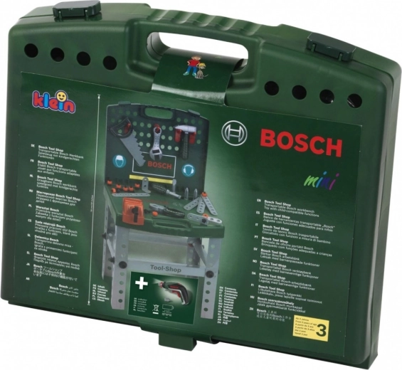 Deze praktische draagbare BOSCH-werkplaats kan eenvoudig worden ingeklapt en opgeborgen in de koffer, zodat u hem overal mee naartoe kunt nemen. U vindt er alles in wat u nodig heeft voor kleine reparaties en veel plezier: zaag, hamer, schroevendraaier, tang, verstelbare sleutel, bankschroef, spijkers, schroeven en latjes.