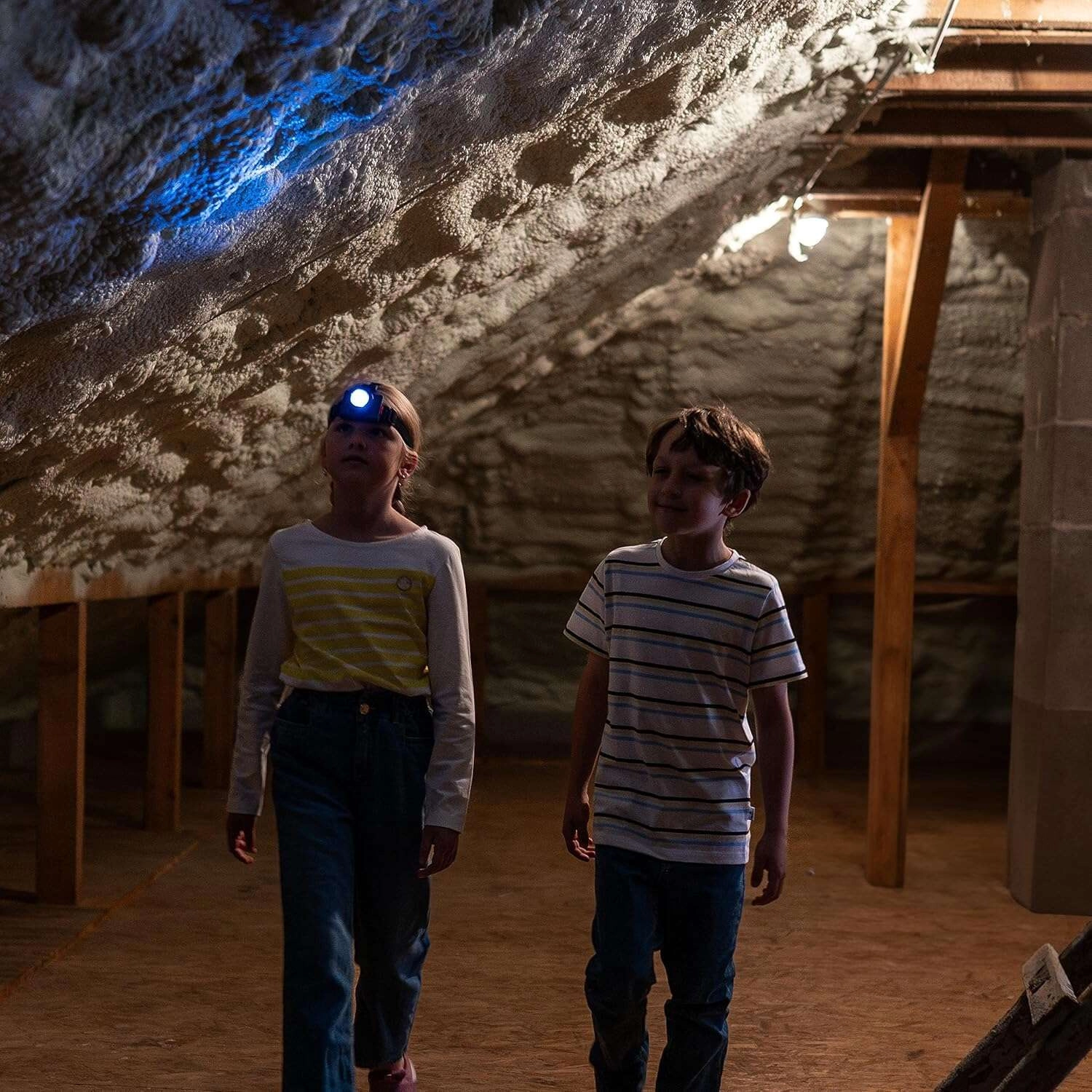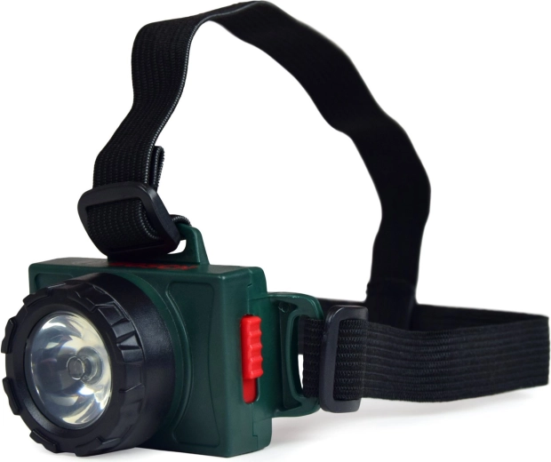 De hoofdlamp is veilig en licht, blijft dankzij de verstelbare elastische band goed op het hoofd zitten en past zich aan verschillende maten aan. Twee lichtmodi – continu en knipperend – stimuleren de verbeelding en verbeteren de zichtbaarheid bij spelen binnen en buiten.