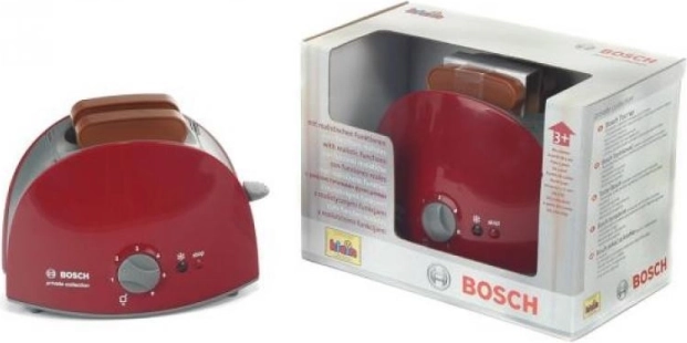 De reeks speelgoedhuishoudelijke apparaten van het bekende merk KLEIN bootst apparaten van vooraanstaande merken natuurgetrouw na. De Bosch-toster is een perfecte imitatie van een echte broodrooster, inclusief een mechanisme voor het starten van de broodsneetjes, die kan beginnen te roosteren met een druk. Na een paar seconden 'gebakken' toasts (kunststof, bijgeleverd bij de toster) springen eruit. De toster heeft geen echte verwarmingselementen, wat dit speelgoed volledig veilig maakt voor kinderen.