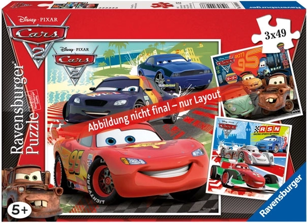 Kinderpuzzel van Ravensburger met het thema Disney/Pixar Cars, met 3 afbeeldingen van 49 stukjes met Bliksem McQueen en zijn vrienden. Hoge kwaliteit, precies uitgesneden stukjes en heldere kleuren zorgen voor uren speelplezier en stimuleren de ontwikkeling van kinderen vanaf 5 jaar.