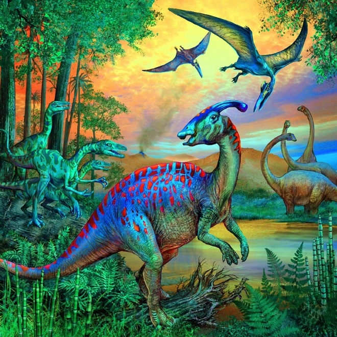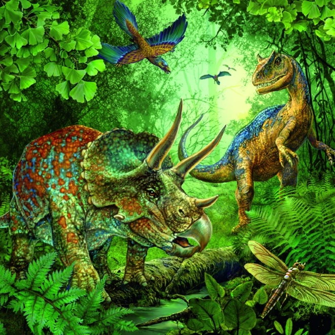 De set bevat 3 losse puzzels van elk 49 stukjes met gevarieerde dinosaurusmotieven – meer plezier en uitdaging voor kinderen vanaf 5 jaar.