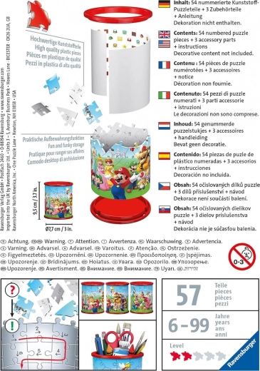 Ravensburger brengt opnieuw een geweldige innovatie met een 3D-puzzel pennenhouder met Super Mario-thema. Deze houder is ideaal niet alleen voor het opbergen van schrijfwaren, maar ook als decoratieve cosmetica-organizer of als opbergplek voor andere kleinigheden.
